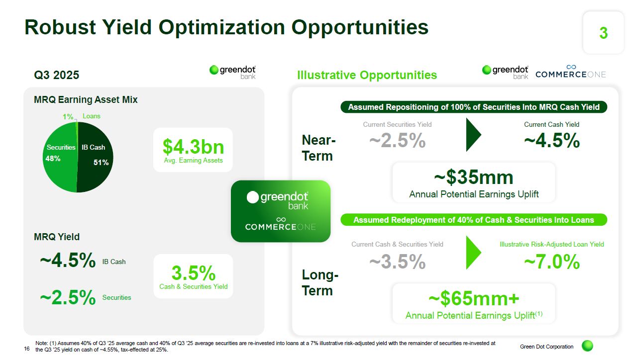 Green Dot Corporation Robust Yield Optimization Opportunities Assumed Repositioning of 100% of Securities Into MRQ Cash