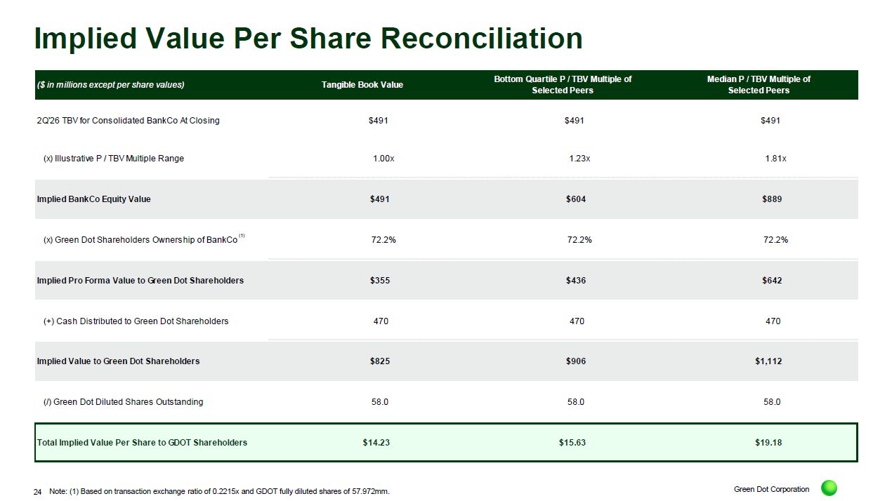 Green Dot Corporation Implied Value Per Share Reconciliation Note: (1) Based on transaction exchange ratio of 0.2215x