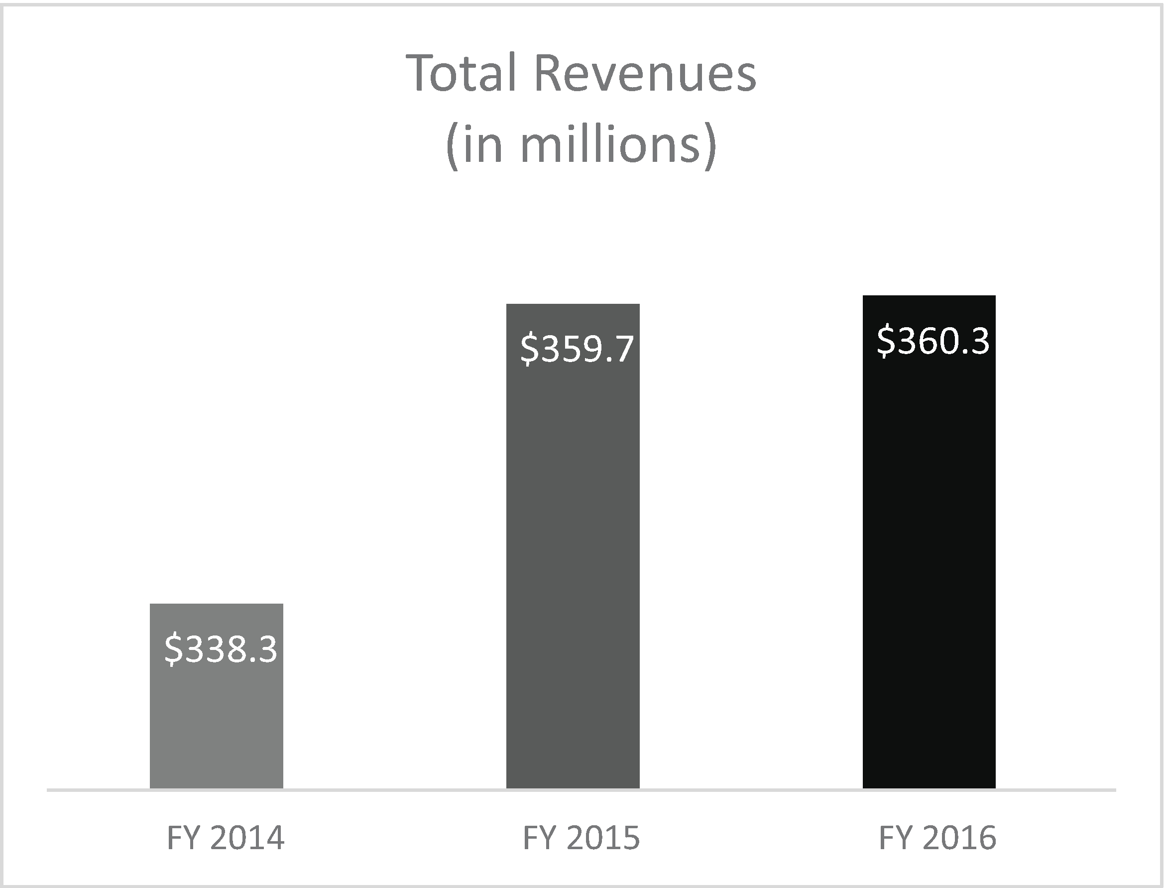 | • | Total Revenues for fiscal 2016 were $360.3 million, up slightly compared to fiscal 2015. |