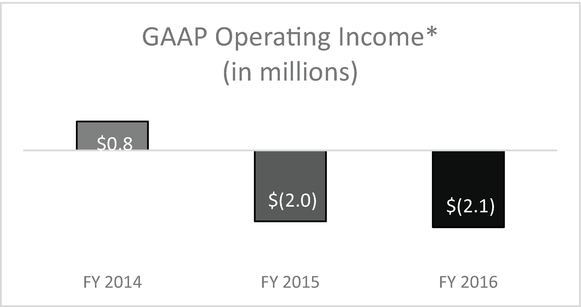 | • | Fiscal 2016 GAAP operating loss was $2.1 million compared to a loss of $2.0 million in fiscal 2015. |