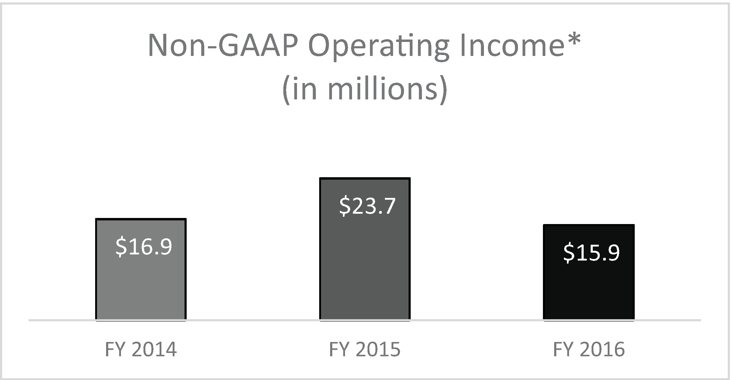 | • | Fiscal 2016 non-GAAP operating income was $15.9 million, compared to $23.7 million in fiscal 2015 (see Appendix B for a reconciliation of these non-GAAP financial measures to results reported under GAAP). |