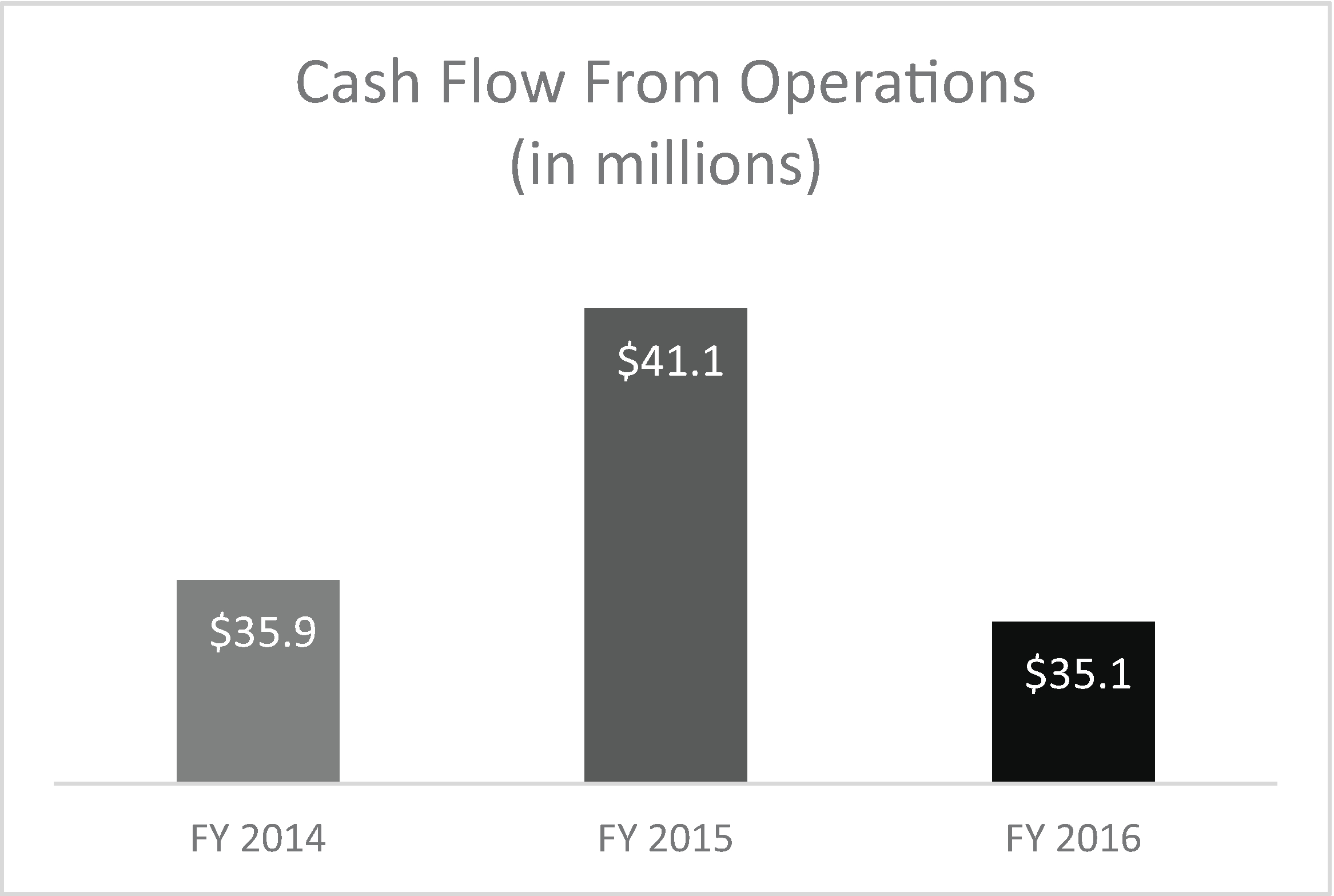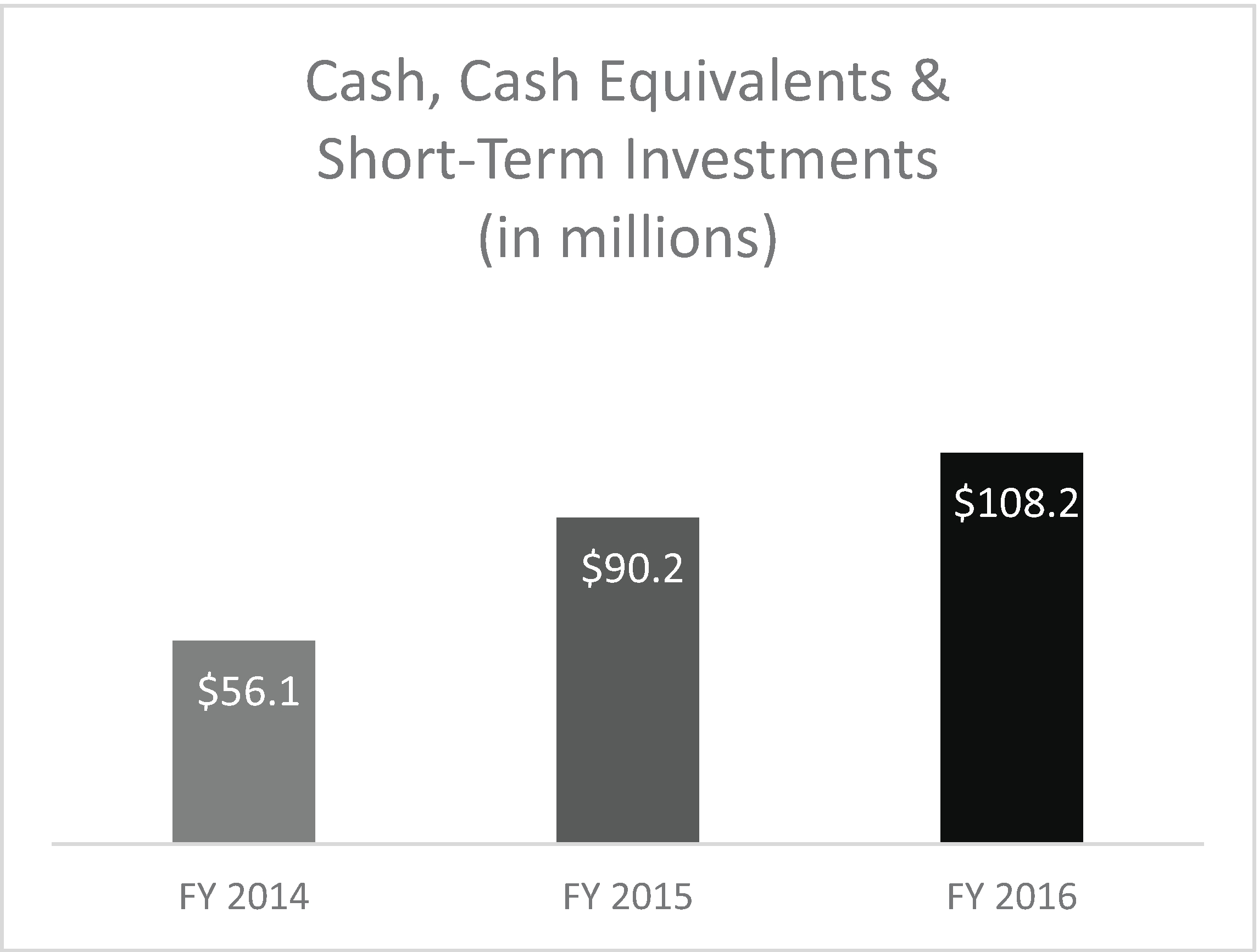 | • | Cash flows from operating activities in fiscal 2016 were $35.1 million. Cash, cash equivalents and short-term investments were $108.2 million at June 30, 2016. |
