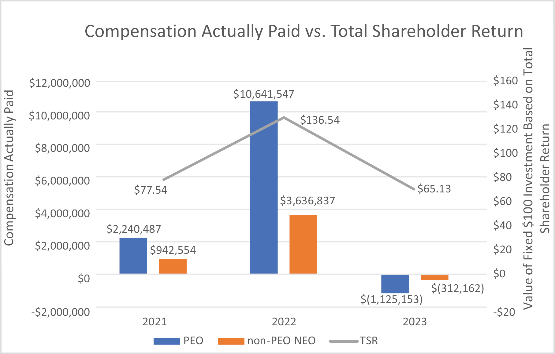 The following graph illustrates the relationship of the CAP for our PEO and non-PEO NEO, as calculated pursuant to SEC rules, to our net loss over the three years presented in the Pay Versus Performance table.