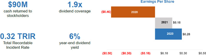 | Strength and durability of our business and cash flows supported returns to stockholders of $90 million |
