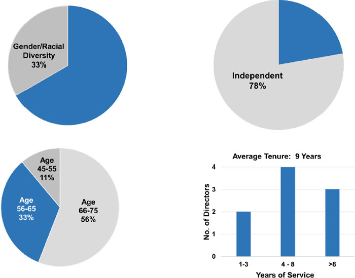 | ✓ | 33% gender and racial diversity; 50% of Board leadership roles are held by women |