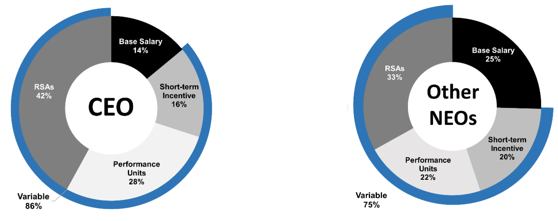 Our philosophy is to reward performance with compensation that is a mix of fixed and variable compensation and is balanced between long-term and annual performance objectives. Good governance, adherence to best practices and consideration of stakeholder interests form the foundation of our executive compensation program, developed by a fully independent Compensation Committee with the support of an independent executive compensation consultant. Our best practices include: