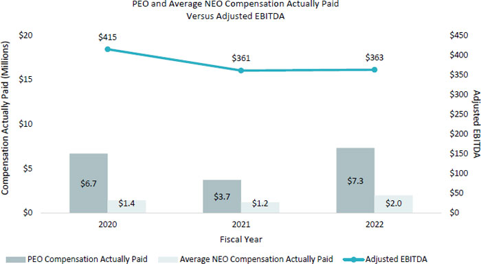 | (5) | We determined Adjusted EBITDA to be the most important financial performance measure used to link Company performance to Compensation Actually Paid to our PEO and other NEOs in 2022. Adjusted EBITDA is a Non-GAAP measure, and is defined in the Compensation Discussion and Analysis under “Annual Performance-Based Incentive Compensation.” This performance measure may not have been the most important financial performance measure for years 2021 and 2020 and we may determine a different financial performance measure to be the most important measure in future years. |