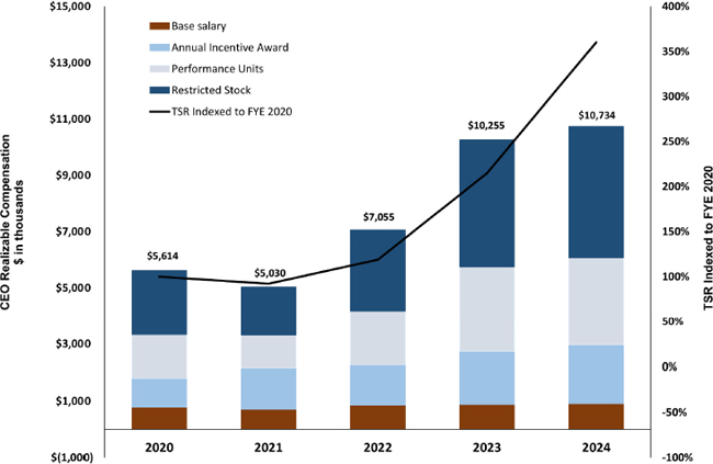 | (5) | If the Company consummated a change of control that was followed by the executive’s Qualifying Termination on December 31, 2024, under the executive’s change of control agreement his or her cash severance would consist of (a) two times (three times for Mr. Childers) the sum of the executive’s base salary and target annual incentive opportunity (calculated as a percentage of annual base salary for 2024), plus (b) the executive’s target annual incentive opportunity (calculated as a percentage of his or her annual base salary for 2024). |