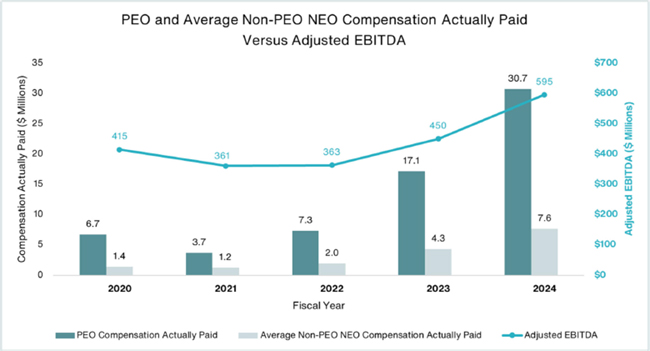 The following chart sets forth the relationship between Compensation Actually Paid to our PEO, the average of Compensation Actually Paid to our other Named Executive Officers, and our Adjusted EBITDA during the five most recently completed fiscal years.