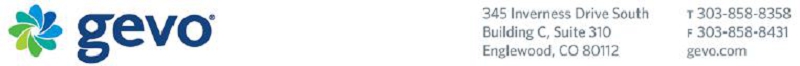 Gevo is a next-generation diversified energy company committed to fueling America’s future with cost-effective, drop-in fuels that contribute to energy security, abate carbon, and strengthen rural communities to drive economic growth. Gevo’s innovative technology can be used to make a variety of renewable products, including synthetic aviation fuel (“SAF”), motor fuels, chemicals, and other materials that provide U.S.-made solutions. By investing in the backbone of rural America, Gevo’s business model includes developing, financing, and operating production facilities that create jobs and revitalize communities. Gevo owns and operates one of the largest dairy-based RNG facilities in the United States, turning by-products into clean, reliable energy. Gevo also operates an ethanol plant with an adjacent carbon capture and sequestration (“CCS”) facility, further solidifying America’s leadership in energy innovation. Additionally, Gevo owns the world’s first production facility for specialty alcohol-to-jet (“ATJ”) fuels and chemicals. Gevo’s market-driven “pay for performance” approach regarding carbon and other sustainability attributes, helps ensure value is delivered to our local economy. Through its Verity subsidiary, Gevo provides transparency, accountability, and efficiency in tracking, measuring and verifying various attributes throughout the supply chain. By strengthening rural economies, Gevo is working to secure a self-sufficient future and to make sure value is brought to the market.