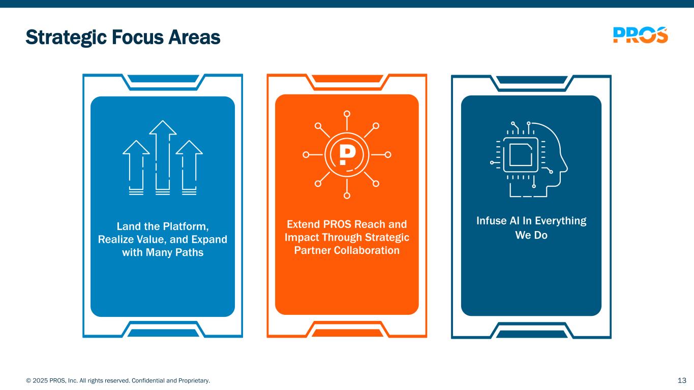 © 2025 PROS, Inc. All rights reserved. Confidential and Proprietary. Strategic Focus Areas Land the Platform, Realize Value, and Expand with Many Paths Extend PROS Reach and Impact Through Strategic Partner Collaboration Infuse AI In Everything We Do 13