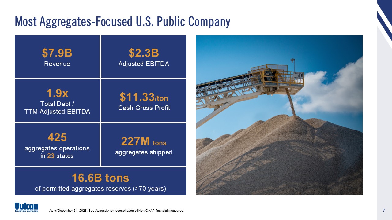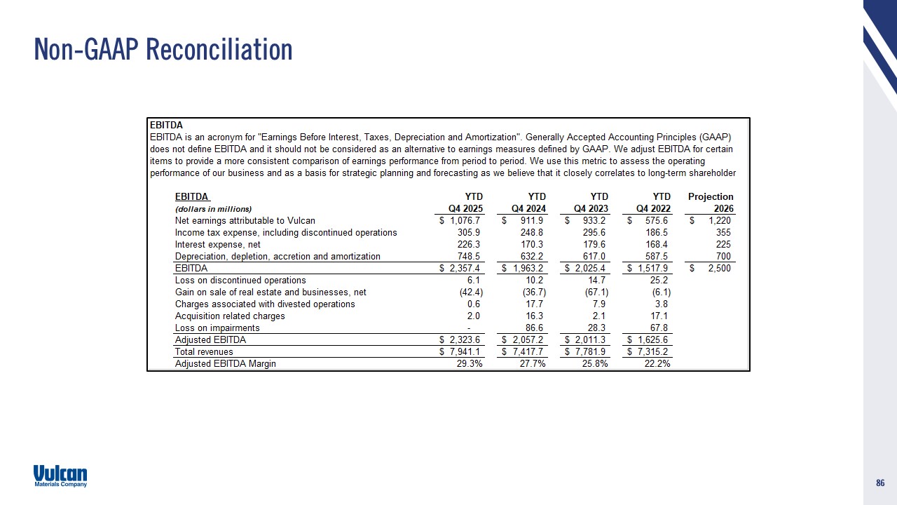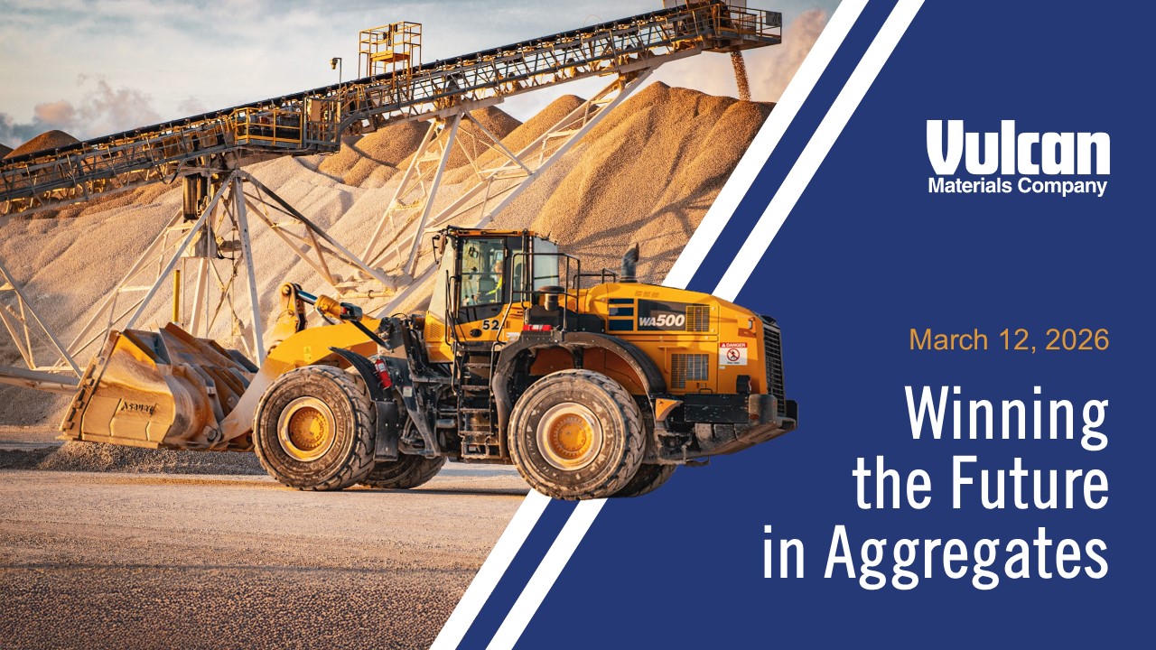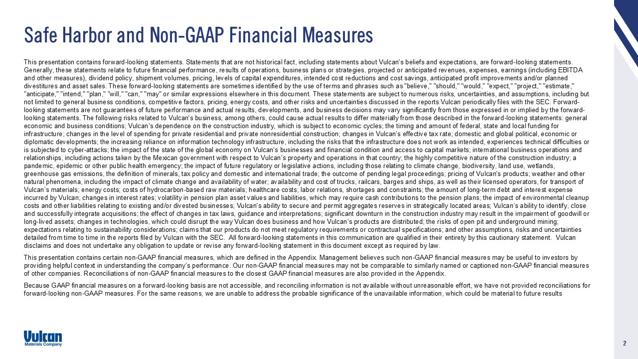 cautionary statement. Vulcan disclaims and does not undertake any obligation to update or revise any forward-looking statement in this document except as required by law. This presentation contains certain non-GAAP financial measures, which