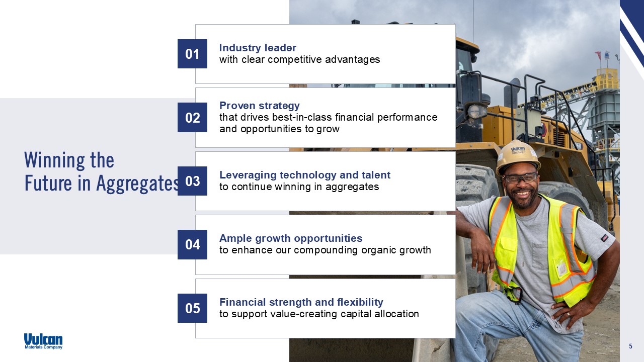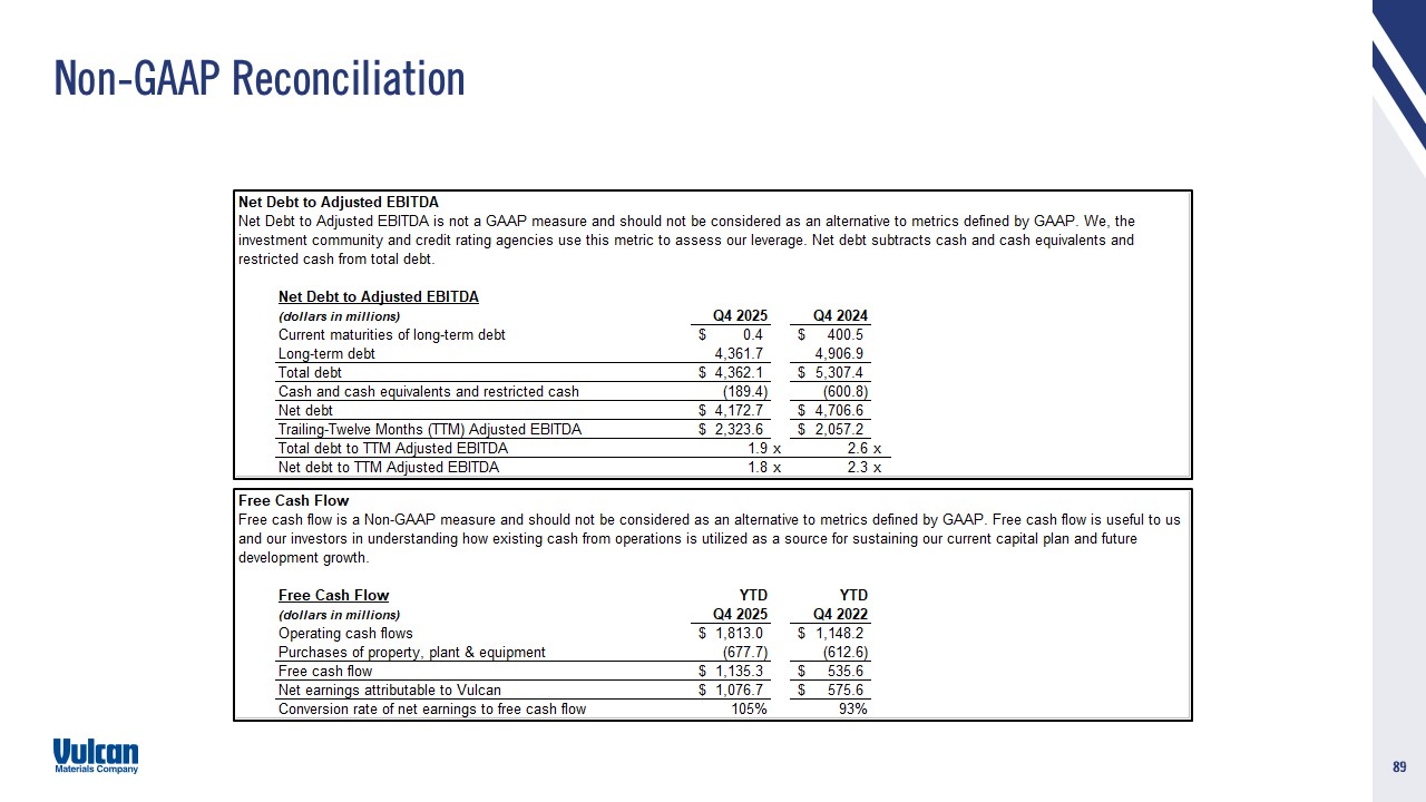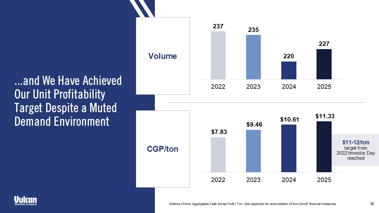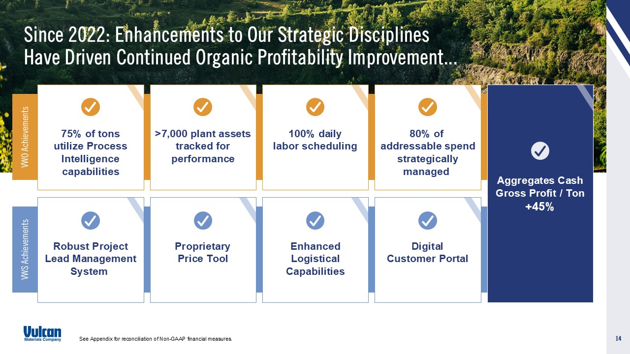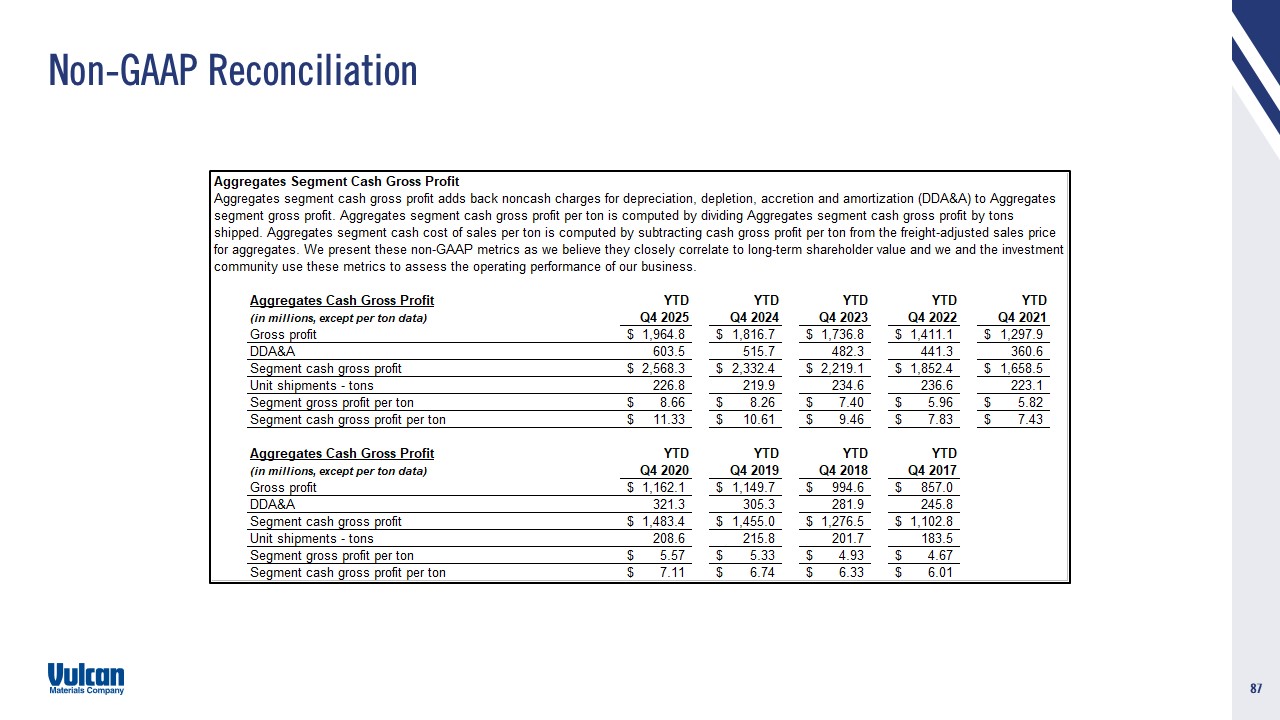 cautionary statement. Vulcan disclaims and does not undertake any obligation to update or revise any forward-looking statement in this document except as required by law. This presentation contains certain non-GAAP financial measures, which