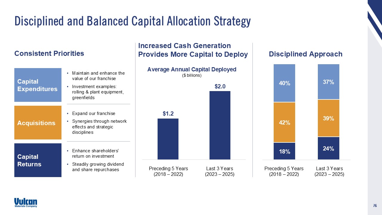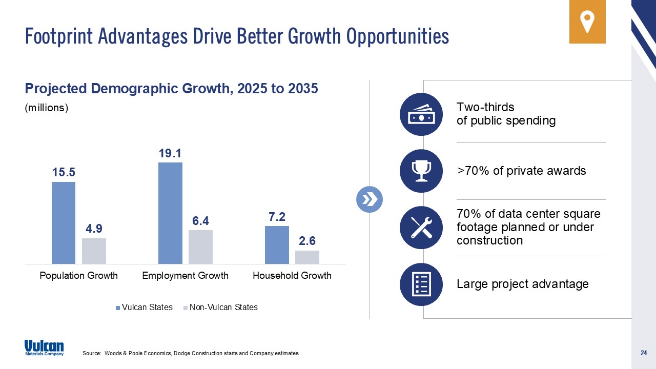 spending for private residential and private nonresidential construction; changes in Vulcan’s effective tax rate; domestic and global political, economic or diplomatic developments; the increasing reliance on information technology
