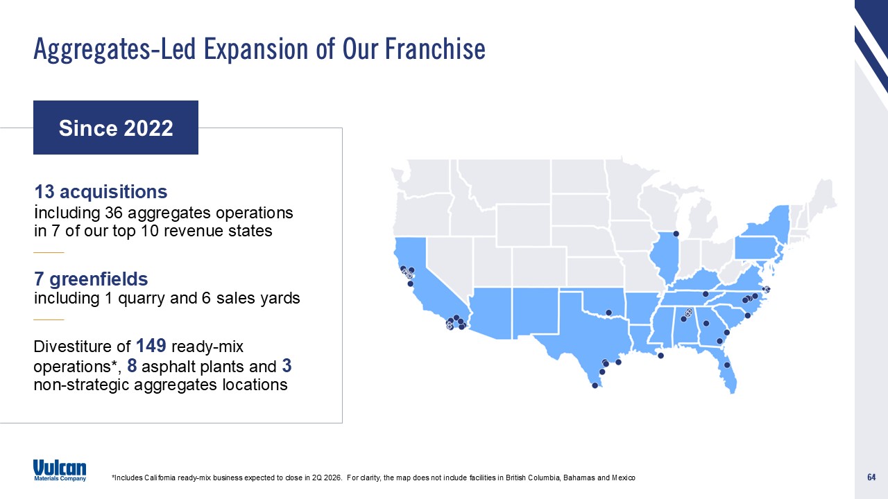 environmental cleanup costs and other liabilities relating to existing and/or divested businesses; Vulcan's ability to secure and permit aggregates reserves in strategically located areas; Vulcan’s ability to identify, close and successfully
