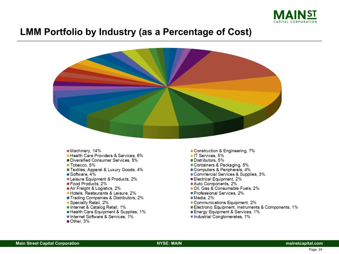 mainstcapital.comNYSE: MAINMain Street Capital Corporation www.mainstcapital.com Page 24 LMM Portfolio by Industry (as a Percentage of Cost)