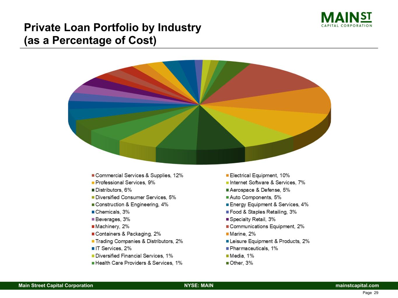 mainstcapital.comNYSE: MAINMain Street Capital Corporation www.mainstcapital.com Page 29 Private Loan Portfolio by Industry (as a Percentage of Cost)