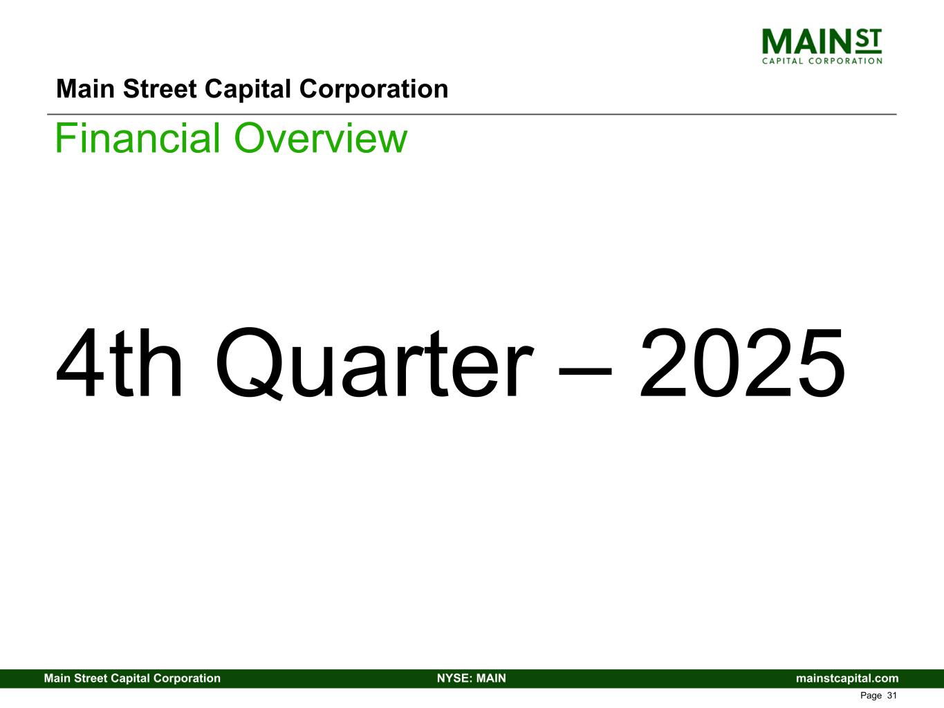 mainstcapital.comNYSE: MAINMain Street Capital Corporation www.mainstcapital.com Page 31 Main Street Capital Corporation Financial Overview 4th Quarter – 2025