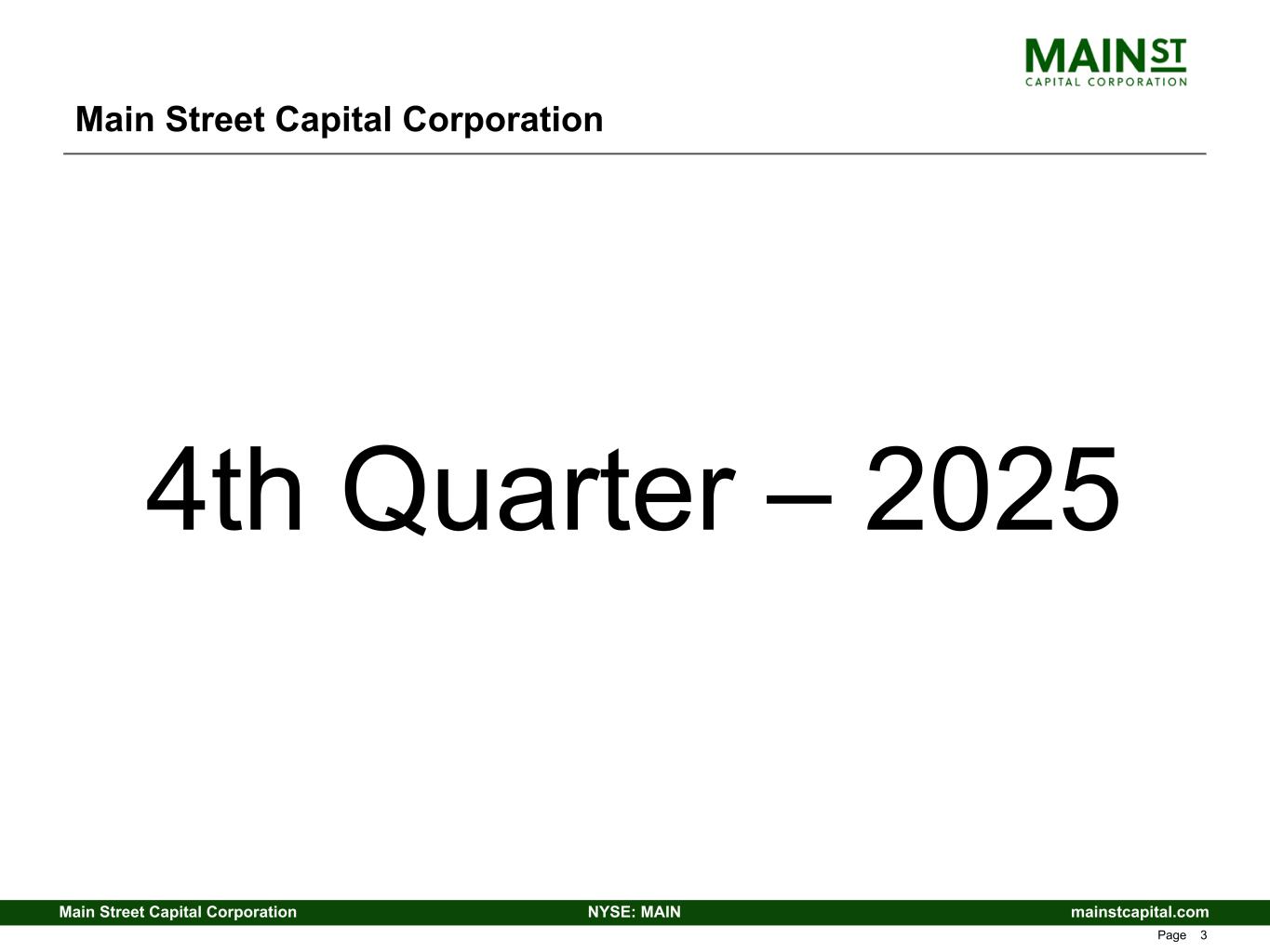 mainstcapital.comNYSE: MAINMain Street Capital Corporation www.mainstcapital.com Page 3 Main Street Capital Corporation 4th Quarter – 2025