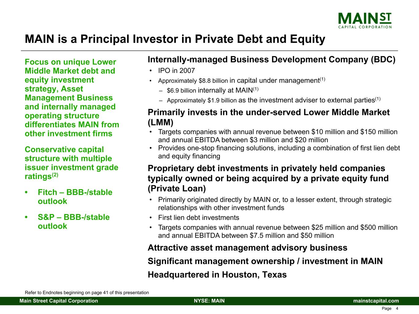 mainstcapital.comNYSE: MAINMain Street Capital Corporation www.mainstcapital.com Page 3 Main Street Capital Corporation Corporate Overview and Investment Strategy 4th Quarter – 2025