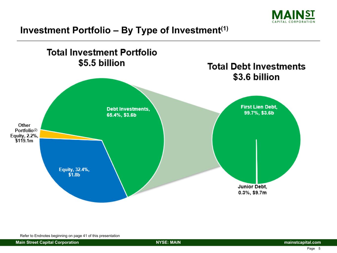 mainstcapital.comNYSE: MAINMain Street Capital Corporation www.mainstcapital.com Page 5 Investment Portfolio – By Type of Investment(1) Refer to Endnotes beginning on page 41 of this presentation