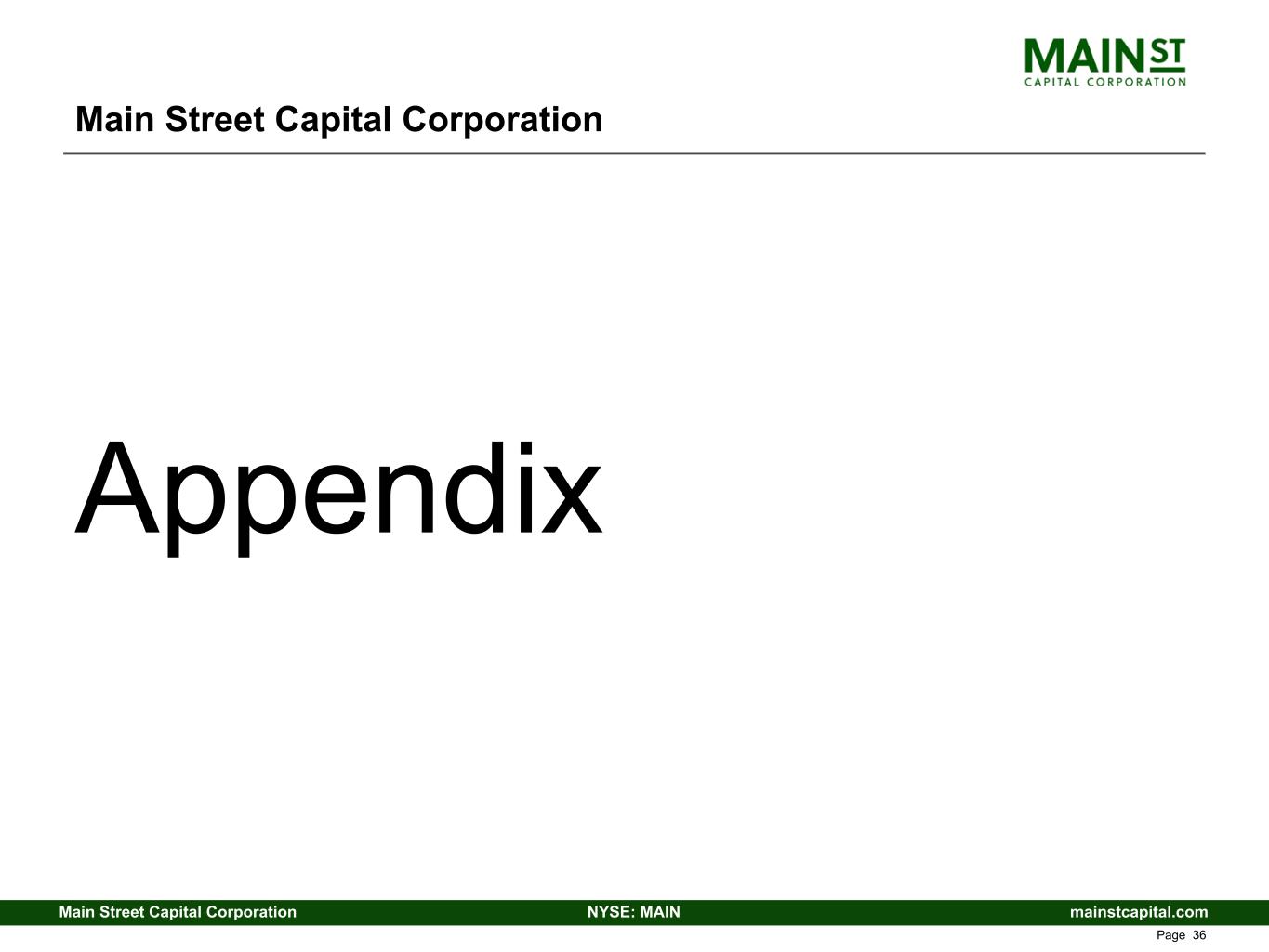 mainstcapital.comNYSE: MAINMain Street Capital Corporation www.mainstcapital.com Page 36 Main Street Capital Corporation Appendix