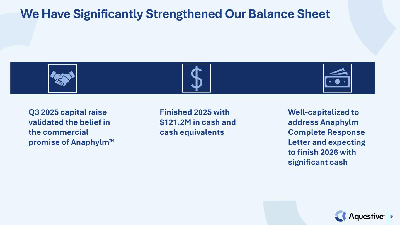 9 Q3 2025 capital raise validated the belief in the commercial promise of Anaphylm Well-capitalized to address Anaphylm Complete Response Letter and expecting to finish 2026 with significant cash We Have Significantly Strengthened Our Balance Sheet Finished 2025 with $121.2M in cash and cash equivalents