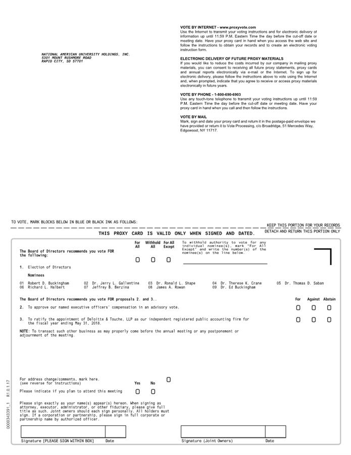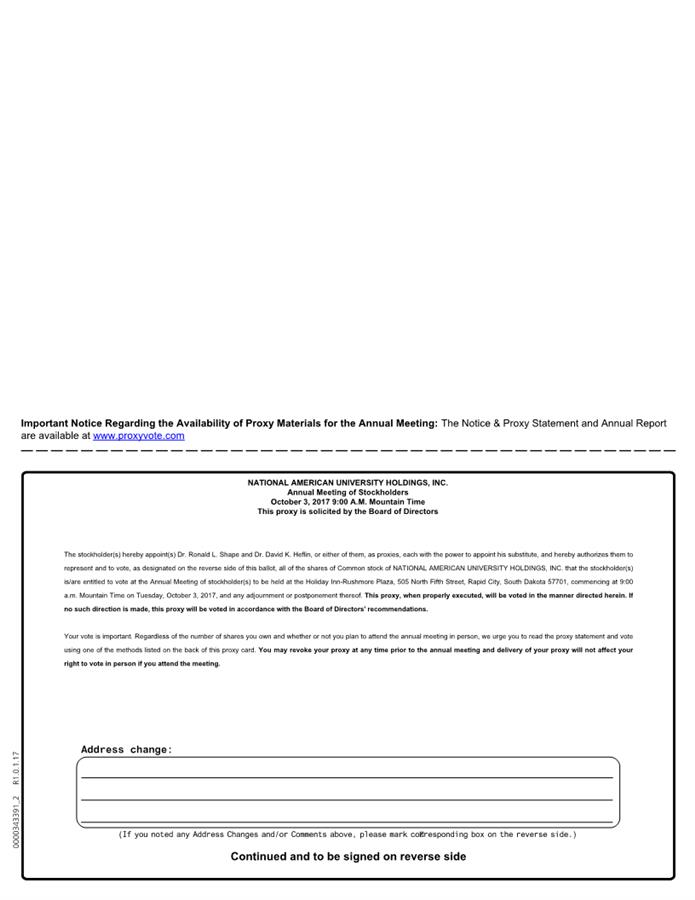 Stockholders of National American University Holdings, Inc. to