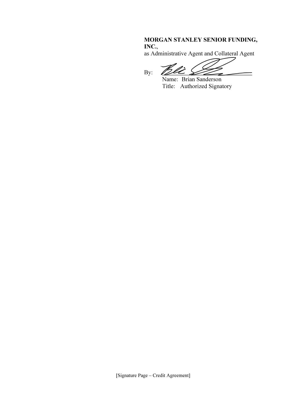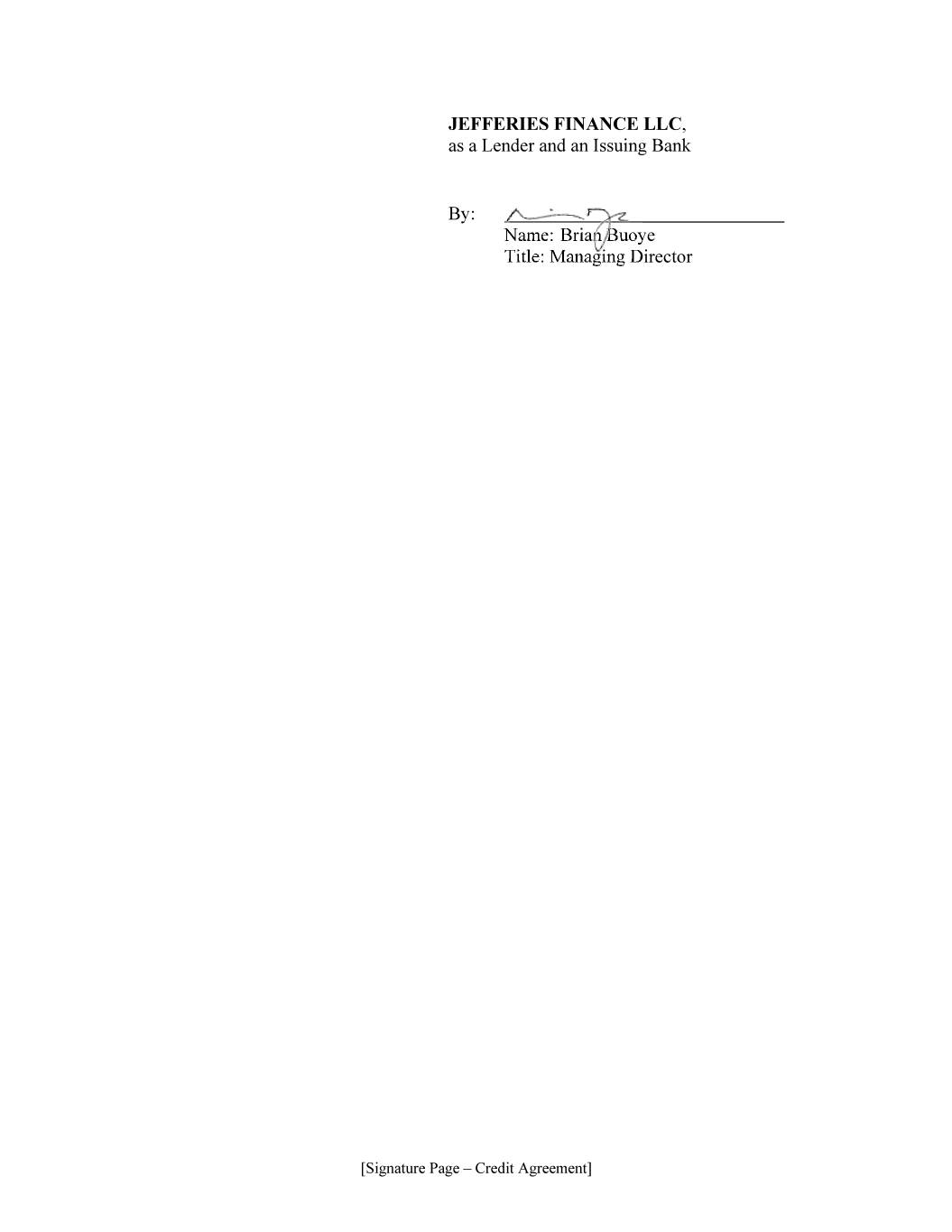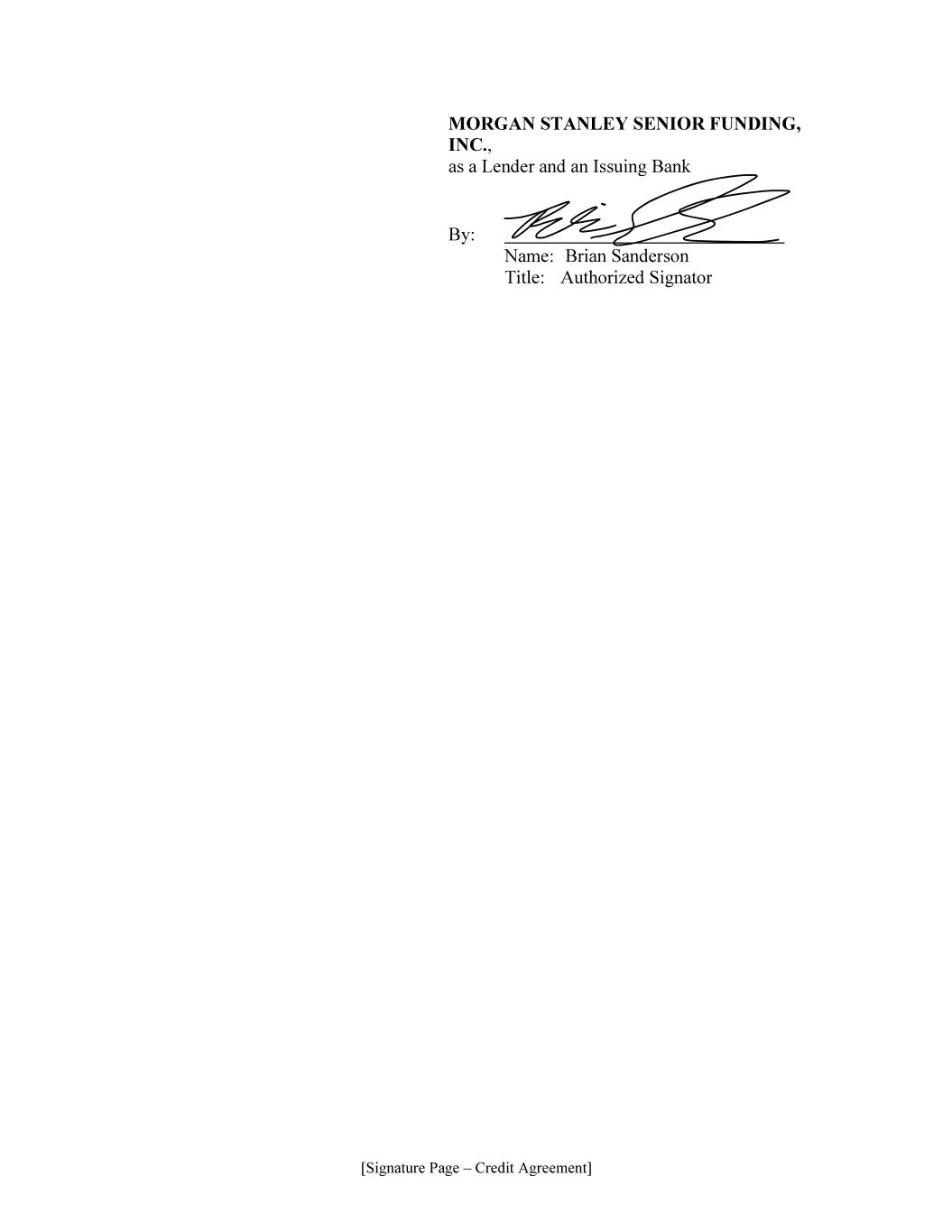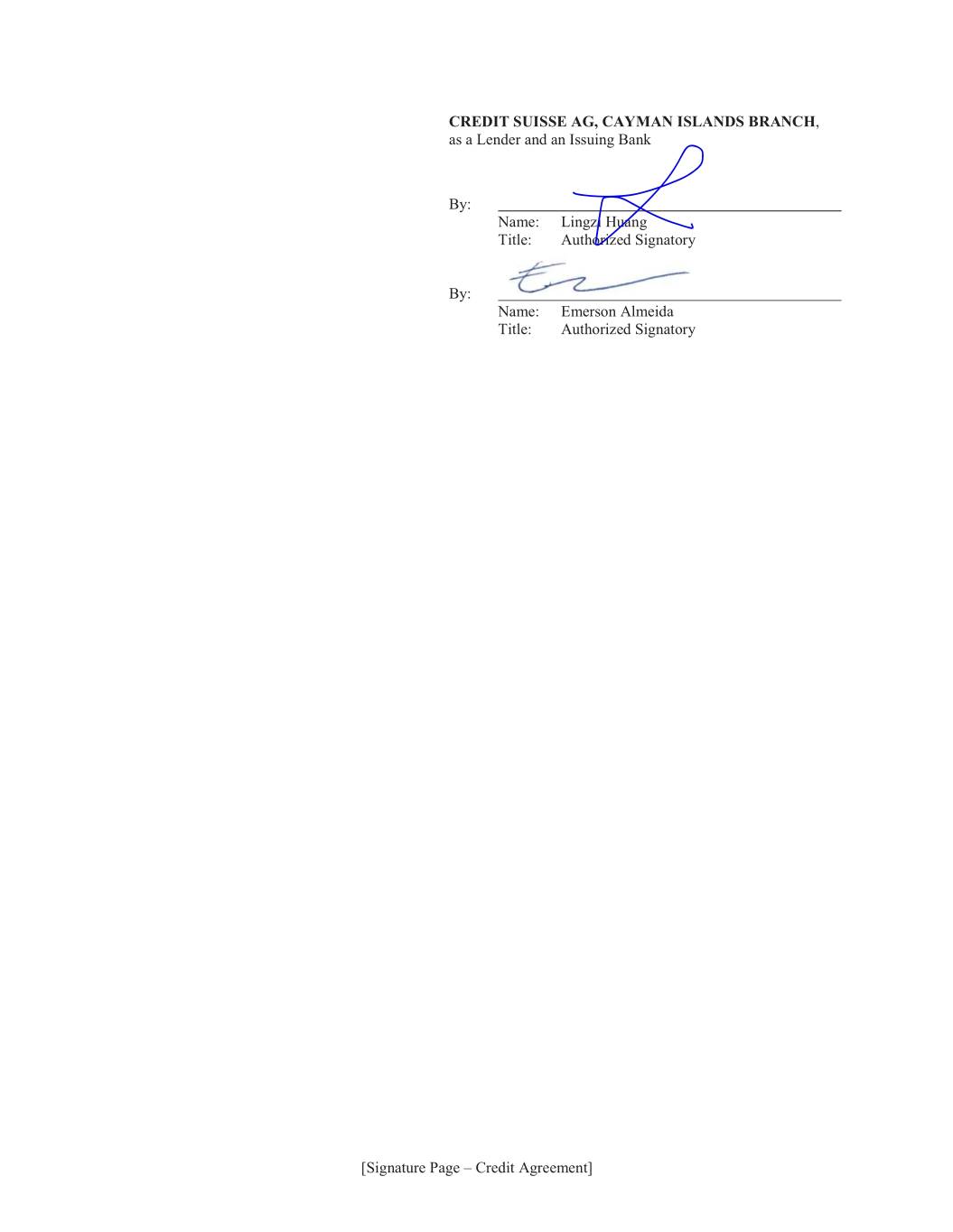 CREDIT SUISSE AG, CAYMAN ISLANDS BRANCH, as a Lender and an Issuing Bank By: Name: Lingzi Huang Title: Authorized Signatory By: Name: Emerson Almeida Title: Authorized Signatory [Signature Page – Credit Agreement]