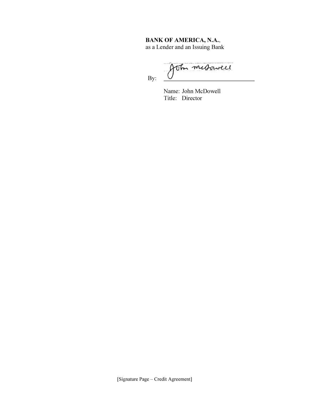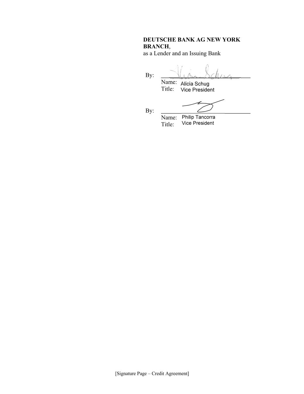 DEUTSCHE BANK AG NEW YORK BRANCH, as a Lender and an Issuing Bank By: Name: Title: By: Name: Title: [Signature Page – Credit Agreement]