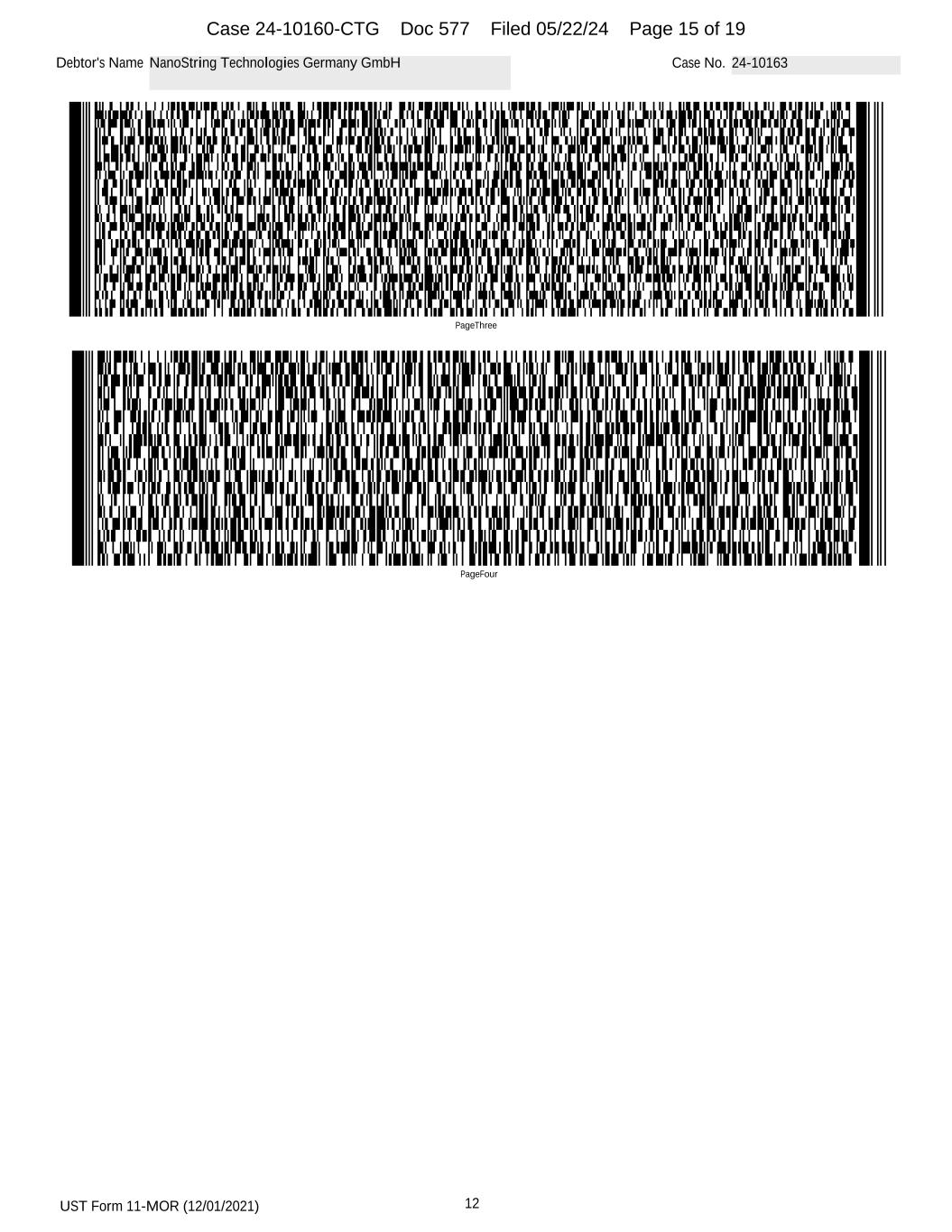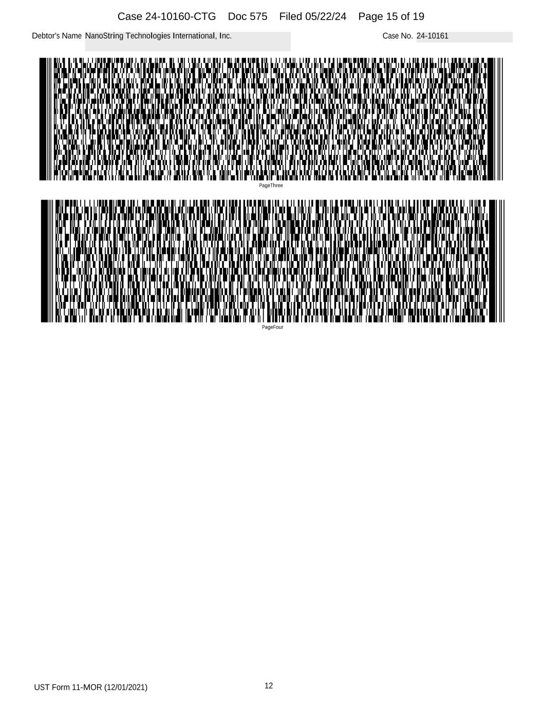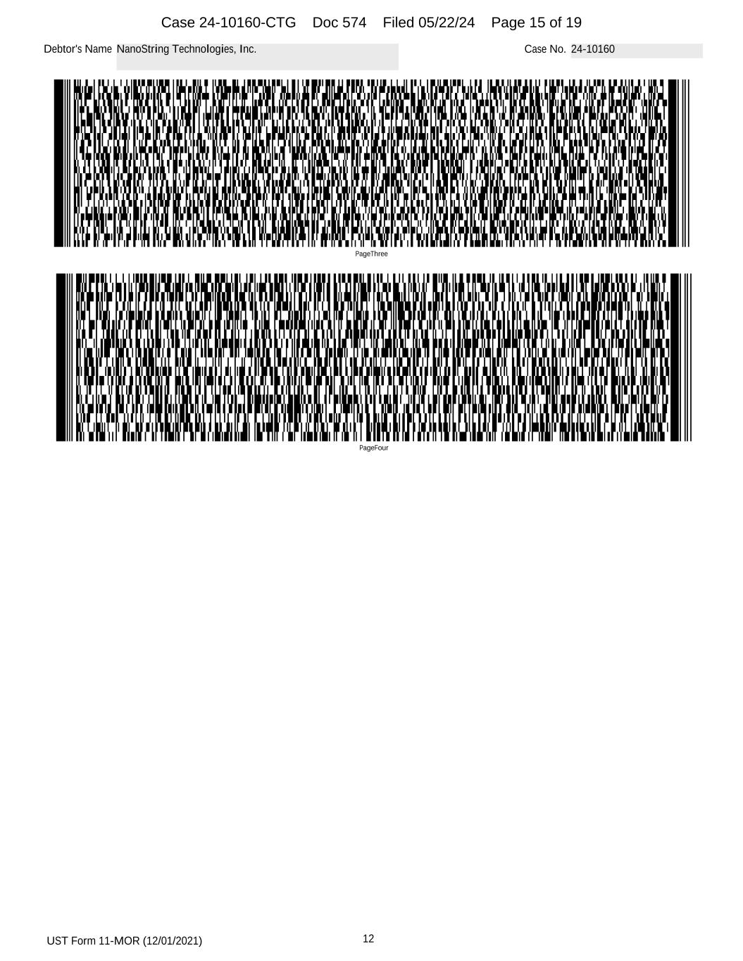 UST Form 11-MOR (12/01/2021) 12 Debtor's Name NanoString Technologies, Inc. Case No. 24-10160 PageFour PageThree Case 24-10160-CTG Doc 574 Filed 05/22/24 Page 15 of 19