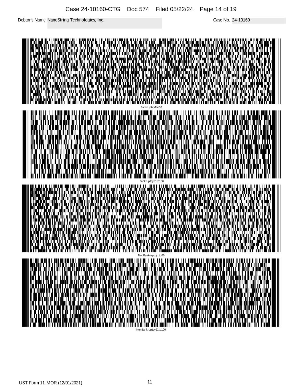 UST Form 11-MOR (12/01/2021) 11 Debtor's Name NanoString Technologies, Inc. Case No. 24-10160 Bankruptcy51to100 NonBankruptcy1to50 NonBankruptcy51to100 Bankruptcy1to50 Case 24-10160-CTG Doc 574 Filed 05/22/24 Page 14 of 19