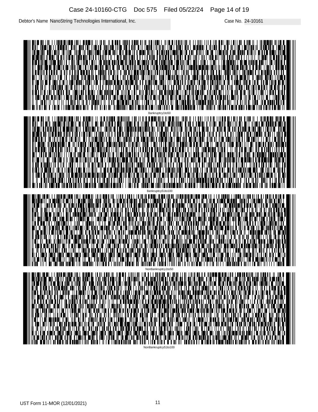 UST Form 11-MOR (12/01/2021) 11 Debtor's Name NanoString Technologies Germany GmbH Case No. 24-10163 Bankruptcy51to100 NonBankruptcy1to50 NonBankruptcy51to100 Bankruptcy1to50 Case 24-10160-CTG Doc 577 Filed 05/22/24 Page 14 of 19