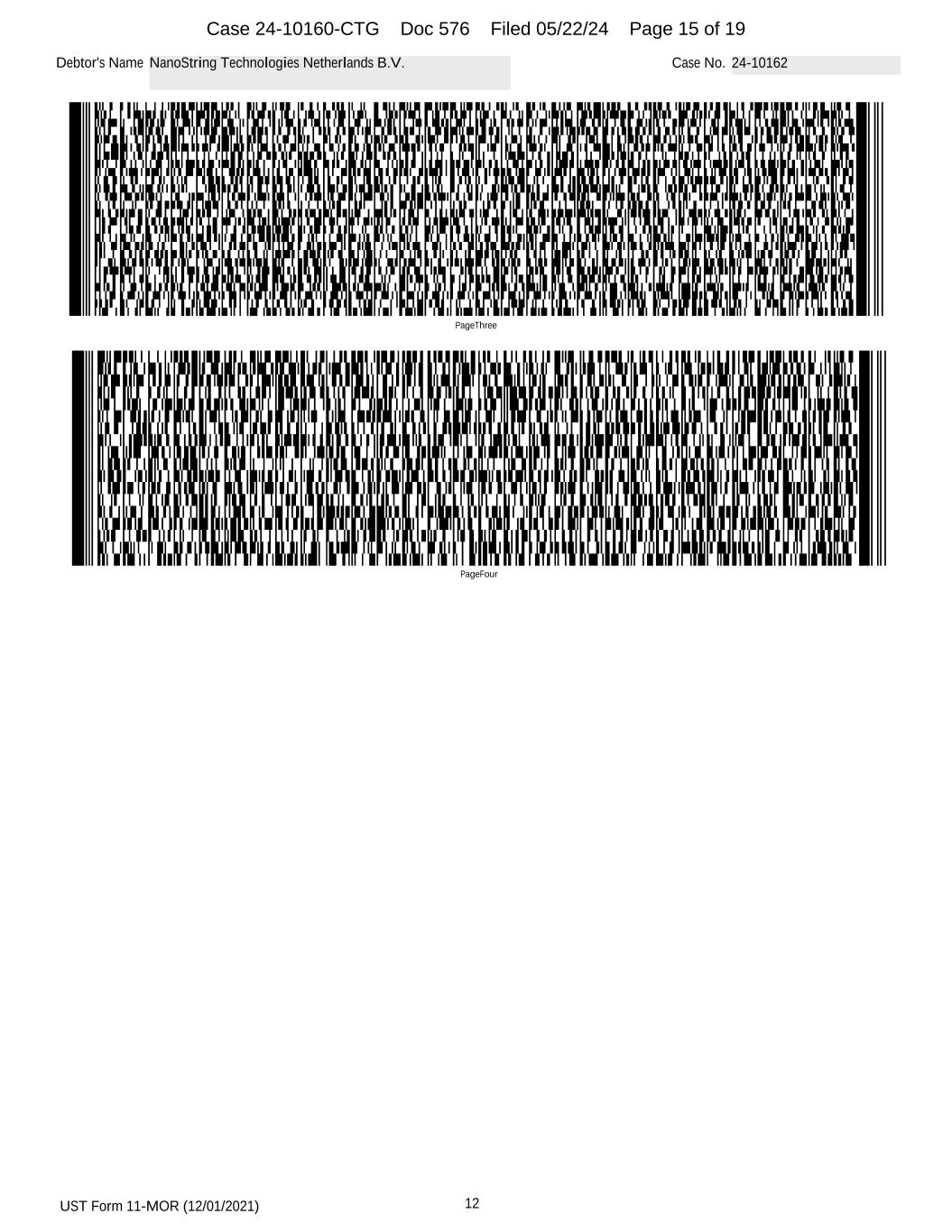 UST Form 11-MOR (12/01/2021) 12 Debtor's Name NanoString Technologies Netherlands B.V. Case No. 24-10162 PageFour PageThree Case 24-10160-CTG Doc 576 Filed 05/22/24 Page 15 of 19
