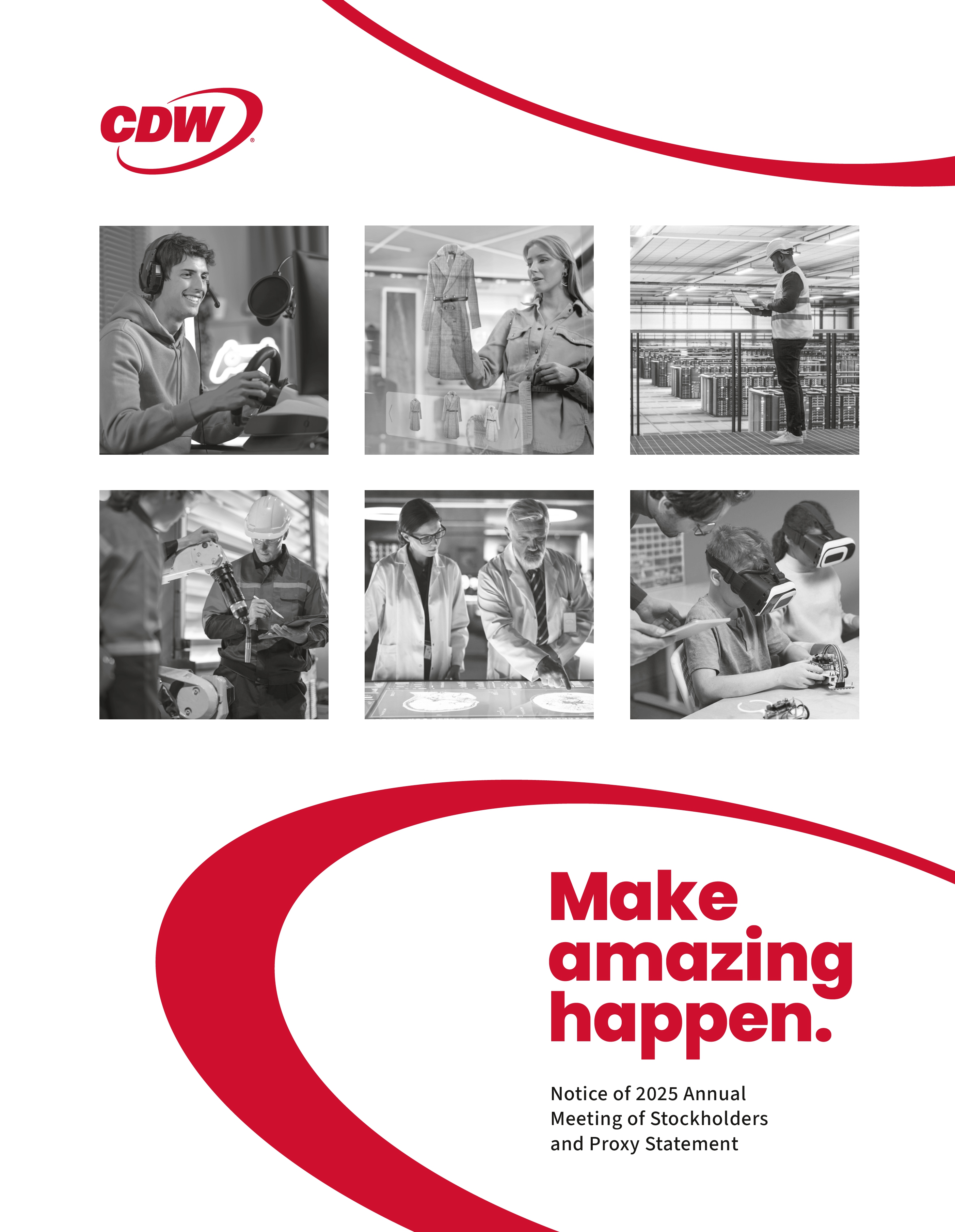 On behalf of our Board of Directors, I would like to invite you to CDW’s 2025 Annual Meeting of Stockholders. The meeting will be held virtually on Tuesday, May 20, 2025, at 7:30 a.m. CDT at www.virtualstockholdermeeting.com/CDW2025. The attached Notice of Annual Meeting of Stockholders and Proxy Statement will serve as your guide to the business conducted at the meeting. Your vote is very important. Whether or not you plan to attend the Annual Meeting, we urge you to vote either via the Internet, by telephone, or by signing and returning a proxy card. Please vote as soon as possible so that your shares will be represented. For more information on CDW and to take advantage of our many stockholder resources and tools, we encourage you to visit our Investor Relations website at investor.cdw.com. Thank you for your continued trust in CDW and investment in our business.