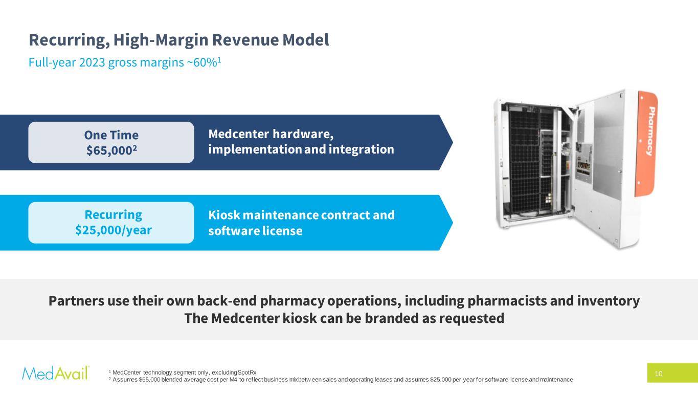 9 Broadening Footprint through Partnerships Also integrated with industry leading pharmacy management systems: EnterpriseRx Willow Urgent Care Emergency Department Primary Care / Clinic