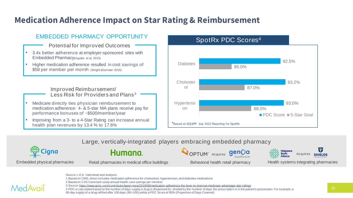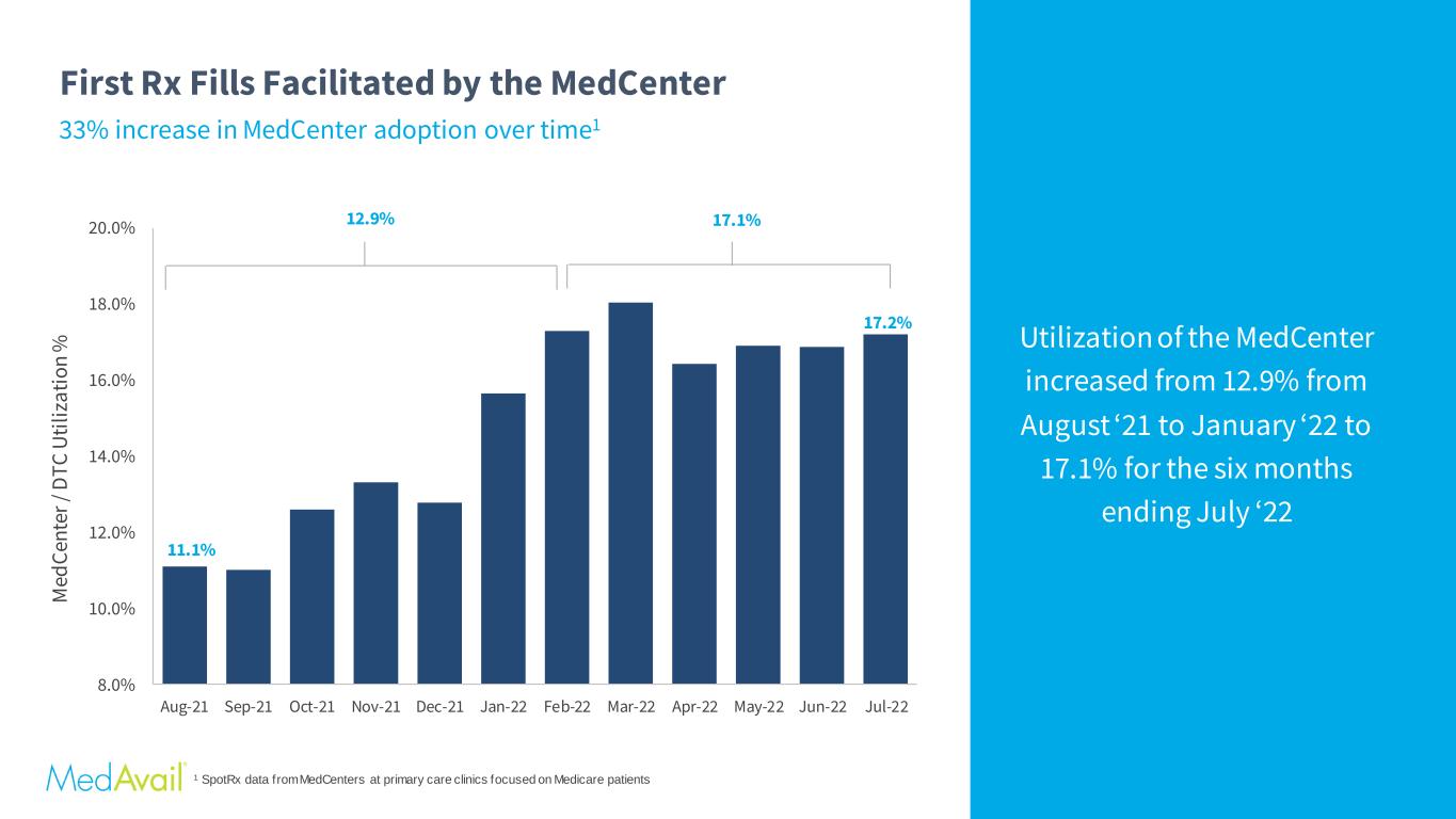 19 First Rx Fills Facilitated by the MedCenter 1 SpotRx data from MedCenters at primary care clinics focused on Medicare patients 33% increase in MedCenter adoption over time1 11.1% 17.2% 8.0% 10.0% 12.0% 14.0% 16.0% 18.0% 20.0% Aug-21 Sep-21 Oct-21 Nov-21 Dec-21 Jan-22 Feb-22 Mar-22 Apr-22 May-22 Jun-22 Jul-22 M ed C en te r / D T C U ti li za ti o n % 17.1%12.9% Utilization of the MedCenter increased from 12.9% from August ‘21 to January ‘22 to 17.1% for the six months ending July ‘22