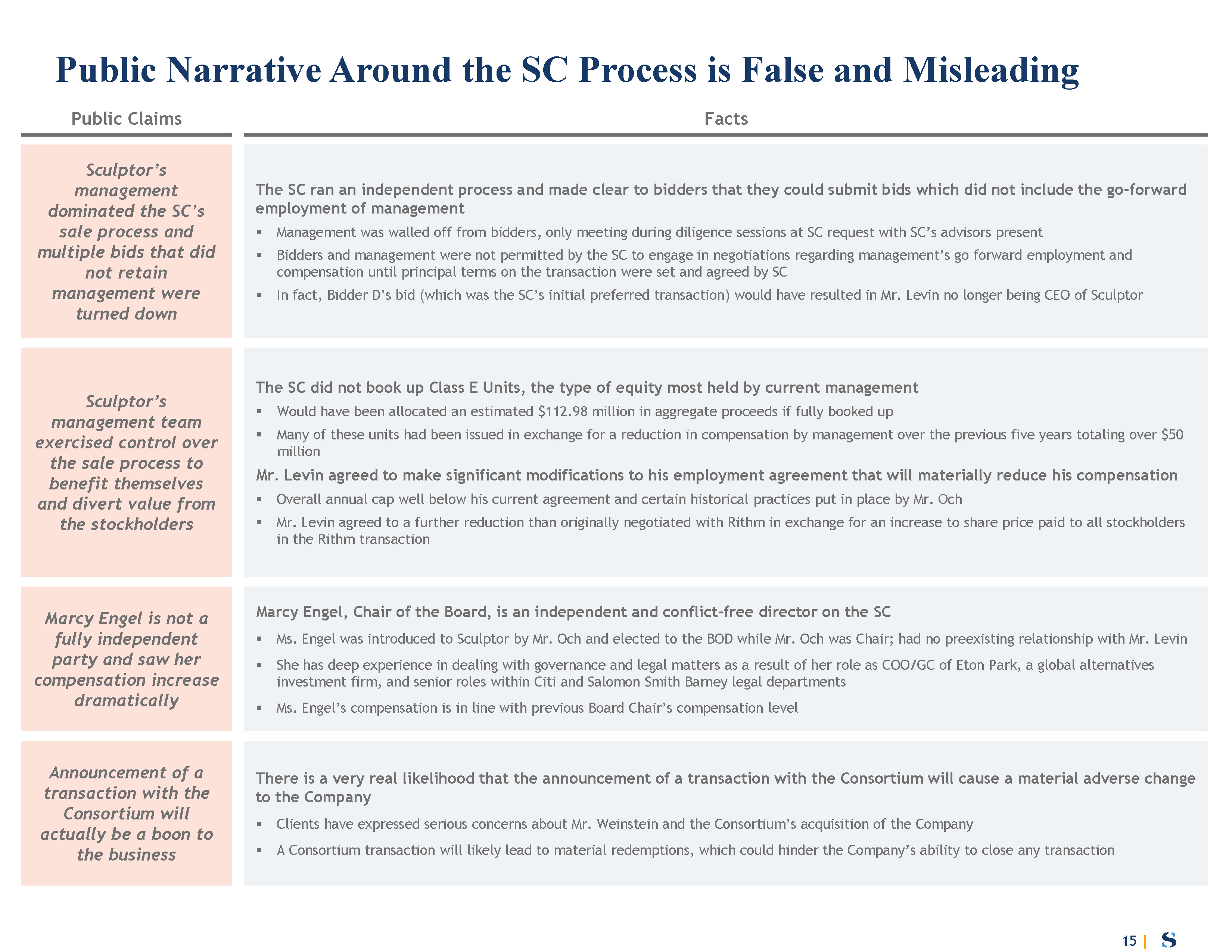 all, including the ability to obtain required regulatory and stockholder approvals; uncertainties as to the timing of the transaction; litigation relating to the transaction; the impact of the transaction on Sculptor’s business operations