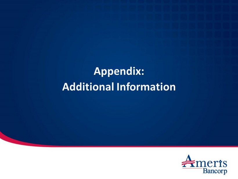 Additional Information 3 Additional Information and Where to Find It This communication is being made in respect of the proposed merger transaction involving Ameris and Atlantic Coast. This communication does not constitute an offer to sell or the solicitation of an offer to buy any securities or a solicitation of any vote or approval. In connection with the proposed merger transaction, Ameris will file with the SEC a registration statement on Form S - 4 that will include a proxy statement/prospectus for the shareholders of Atlantic Coast. Ameris also plans to file other documents with the SEC regarding the proposed merger transaction with Atlantic Coast. Atlantic Coast will mail the final proxy statement/prospectus to its shareholders. BEFORE MAKING ANY VOTING OR INVESTMENT DECISION, INVESTORS AND SHAREHOLDERS ARE URGED TO READ THE PROXY STATEMENT/PROSPECTUS REGARDING THE PROPOSED MERGER TRANSACTION AND ANY OTHER RELEVANT DOCUMENTS CAREFULLY IN THEIR ENTIRETY WHEN THEY BECOME AVAILABLE BECAUSE THEY WILL CONTAIN IMPORTANT INFORMATION ABOUT THE MERGER. The proxy statement/prospectus, as well as other filings containing information about Ameris and Atlantic Coast, will be available without charge, at the SEC’s website (http://www.sec.gov). Copies of the proxy statement/prospectus and other documents filed with the SEC in connection with the proposed merger transaction can also be obtained, when available, without charge, from the Company’s website ( http://www.amerisbank.com ) and Atlantic Coast’s website ( https://www.atlanticcoastbank.net/ ). Participants in the Merger Solicitation Ameris and Atlantic Coast, and certain of their respective directors, executive officers and other members of management and employees may be deemed to be participants in the solicitation of proxies from the shareholders of Atlantic Coast in respect of the proposed merger transaction. Information regarding the directors and executive officers of Ameris and Atlantic Coast and other persons who may be deemed participants in the solicitation of the shareholders of Atlantic Coast in connection with the proposed merger transaction will be included in the proxy statement/prospectus for Atlantic Coast’s special meeting of shareholders, which will be filed by Ameris with the SEC. Information about Ameris ’ directors and executive officers can also be found in Ameris ’ definitive proxy statement in connection with its 2017 annual meeting of shareholders, as filed with the SEC on April 3 , 2017, and other documents subsequently filed by Ameris with the SEC. Information about Atlantic Coast’s directors and executive officers can also be found in Atlantic Coast’s definitive proxy statement in connection with its 2017 annual meeting of shareholders, as filed with the SEC on April 18, 2017, and other documents subsequently filed by Atlantic Coast with the SEC. Additional information regarding the interests of such participants will be included in the proxy statement/prospectus and other relevant documents regarding the proposed merger transaction filed with the SEC when they become available.