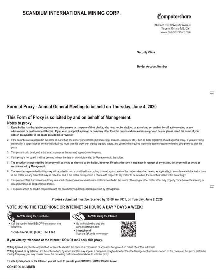 the annual general meeting of shareholders (the “Meeting”) of Scandium