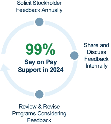 In 2024, we adopted a program whereby all long-term awards, including those granted to our NEOs, are bifurcated into an equity portion (e.g., PBRSU and/or RSU) and a fixed value cash-based portion (“Cash Award”). The Cash Award vests over 3 years, like the equity portion. This program was implemented in response to stockholder feedback to reduce the dilution from our equity programs. Specifically, it permits for decreased equity utilization, while keeping target compensation levels intact and providing the Company another multi-year retention feature in its compensation program. We believe this program was the best available solution to balance reducing dilution, rewarding and retaining employees, and managing compensation expense.