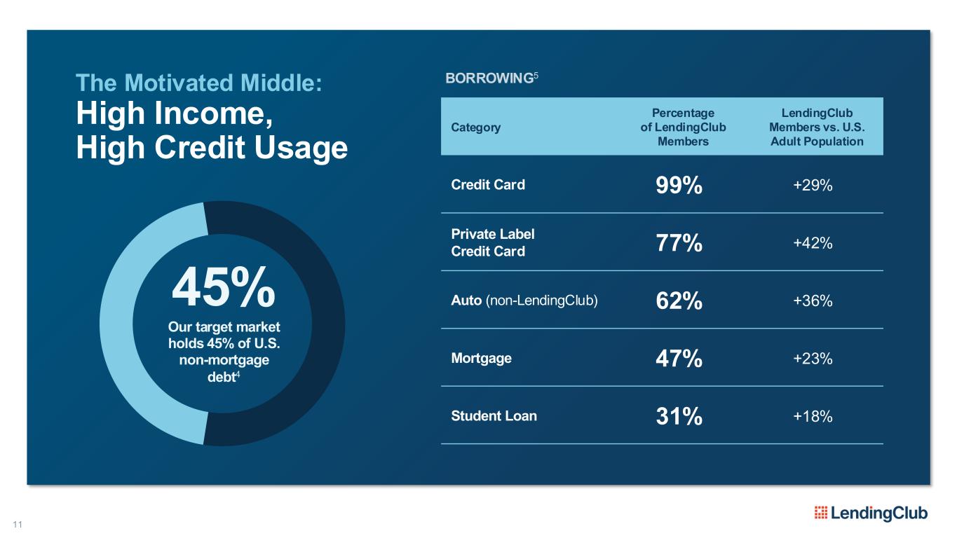 Who We Serve: The Motivated Middle U.S. Adult Population LendingClub Members FICO 717 719 INCOME $75K $121K DEMOGRAPHIC AVERAGES3Tens of millions of consumers who are: ▪ Goal oriented ▪ Digitally capable ▪ Value conscious ▪ Multi-relationship 32% of the U.S. adult population2 10