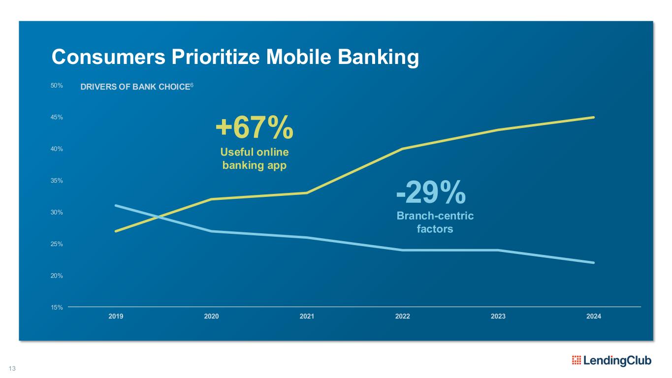 13 Consumers Prioritize Mobile Banking 15% 20% 25% 30% 35% 40% 45% 50% 2019 2020 2021 2022 2023 2024 DRIVERS OF BANK CHOICE6 Useful online banking app Branch-centric factors +67% -29%