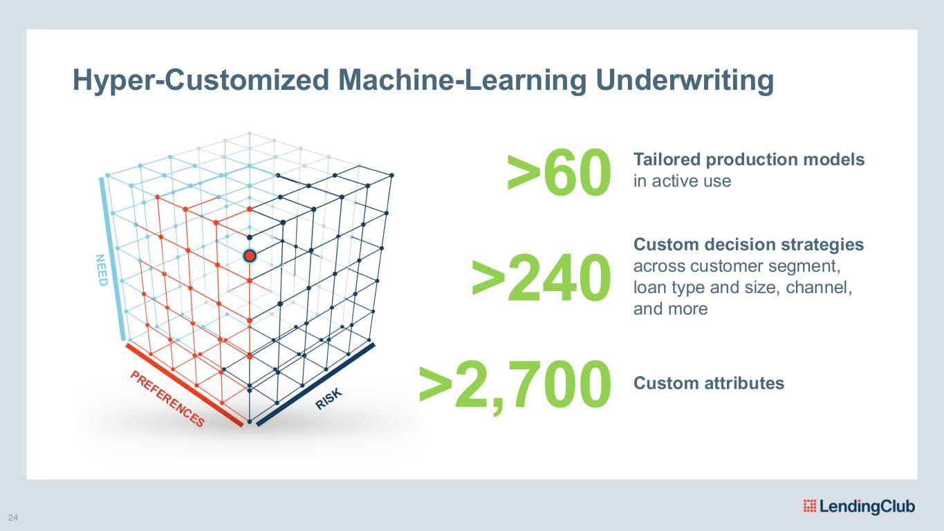 24 Hyper-Customized Machine-Learning Underwriting >60 Tailored production models in active use >240 Custom decision strategies across customer segment, loan type and size, channel, and more >2,700 Custom attributes