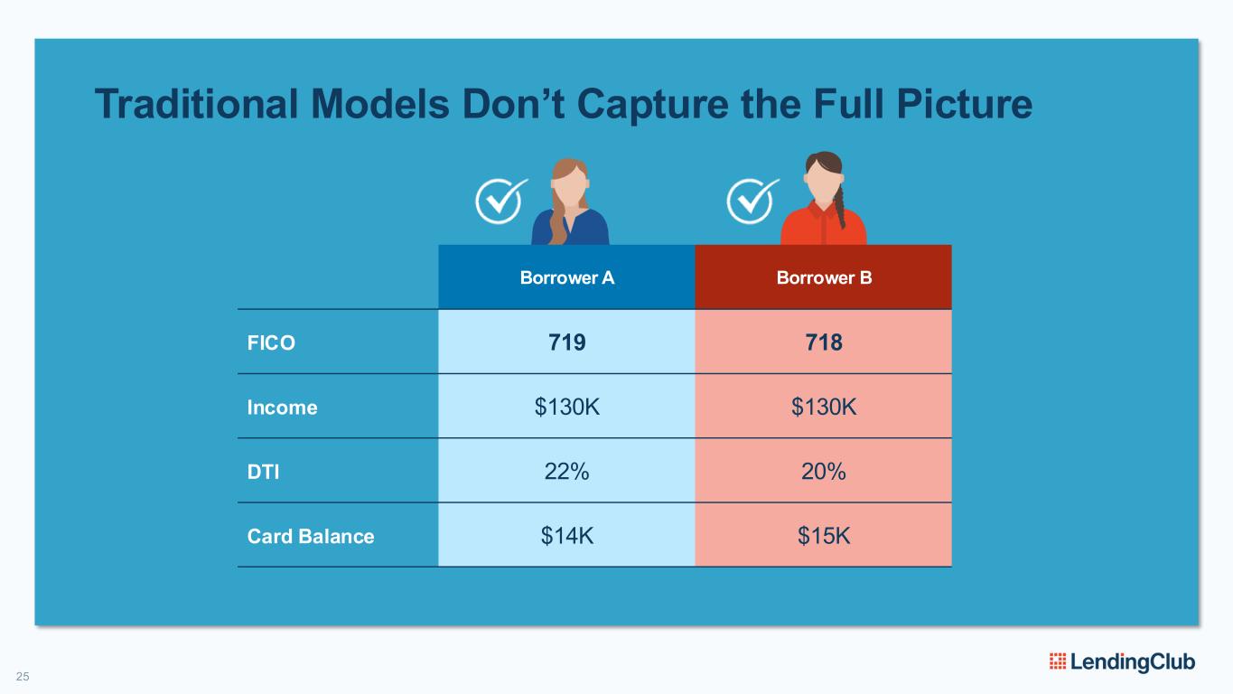 25 Traditional Models Don’t Capture the Full Picture Borrower A Borrower B FICO 719 718 Income $130K $130K DTI 22% 20% Card Balance $14K $15K