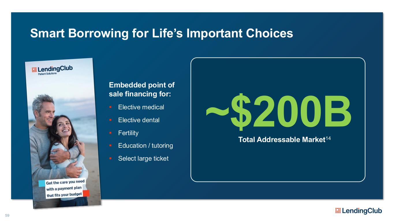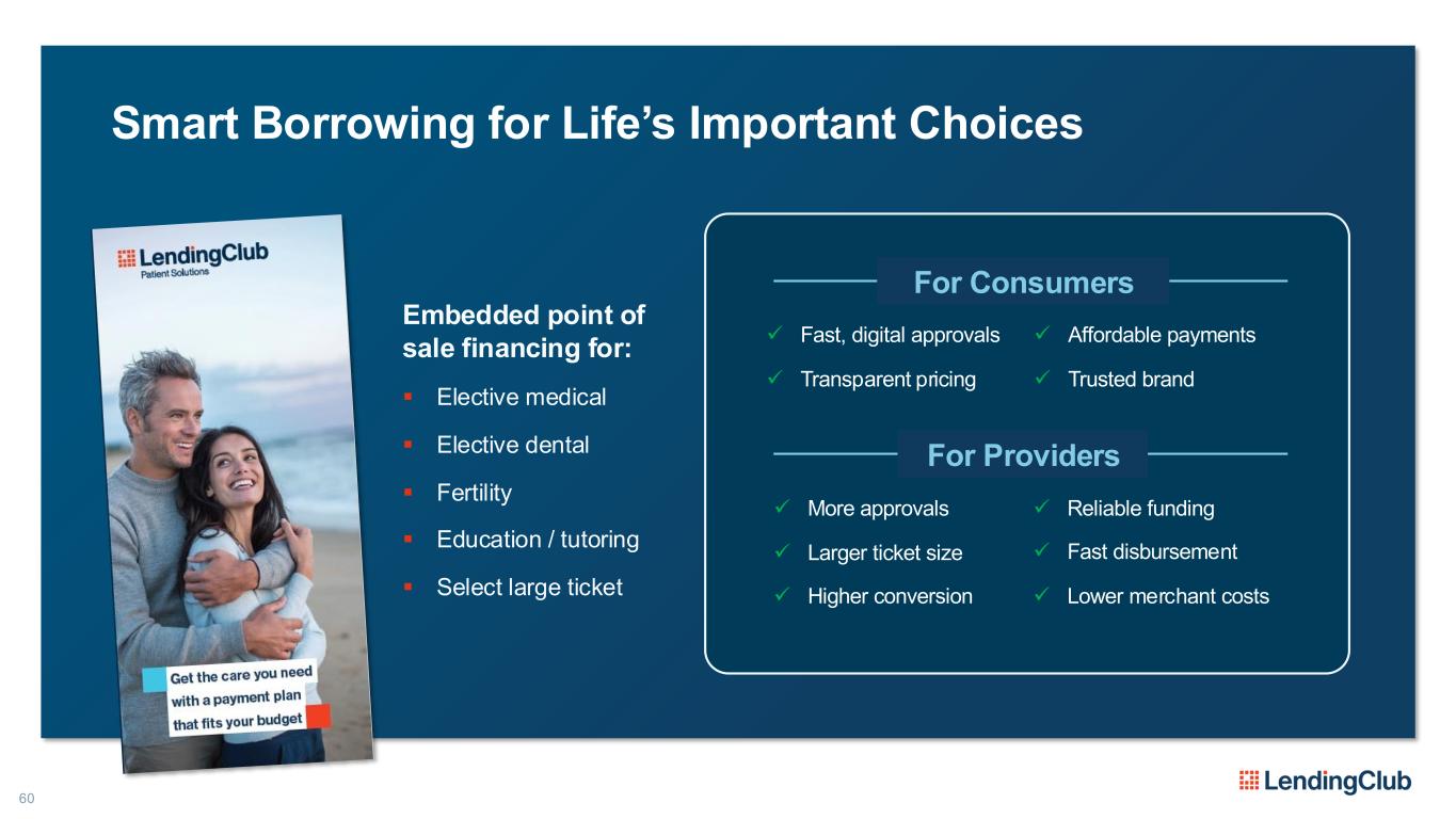 59 Smart Borrowing for Life’s Important Choices Embedded point of sale financing for: ▪ Elective medical ▪ Elective dental ▪ Fertility ▪ Education / tutoring ▪ Select large ticket Total Addressable Market14 ~$200B