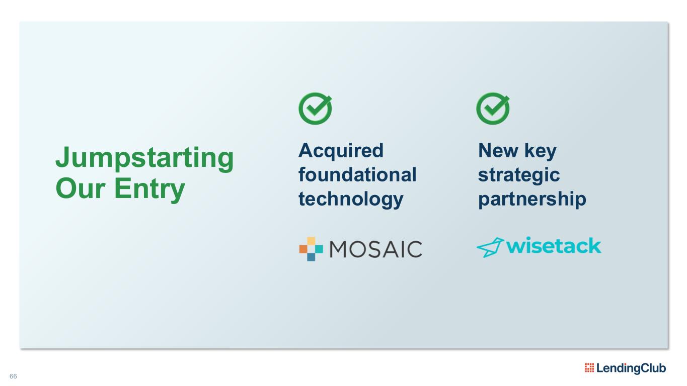 65 Applying Our Model in a New, High-Value Market Current Capabilities ✓ Industry leading underwriting ✓ Large-ticket personal loans ✓ B2B2C customer management ✓ Reliable funding U.S. Annual Home Improvement Spend15 ~$500B ▪ Fragmented market ▪ Capital constrained lenders ▪ Suboptimal underwriting ▪ Lackluster experiences Coming Soon ✓ Vertical-specific technology and capabilities ✓ Home improvement distribution