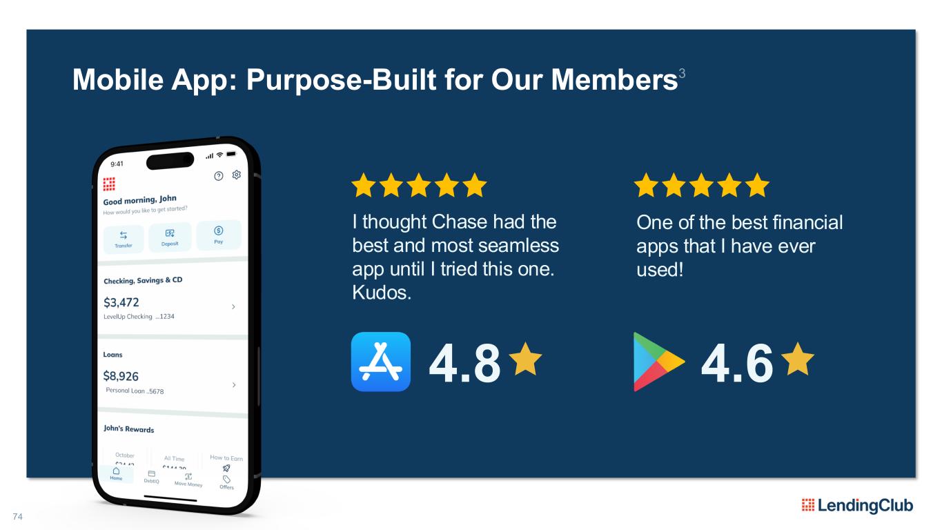 74 Mobile App: Purpose-Built for Our Members3 4.8 4.6 I thought Chase had the best and most seamless app until I tried this one. Kudos. One of the best financial apps that I have ever used!
