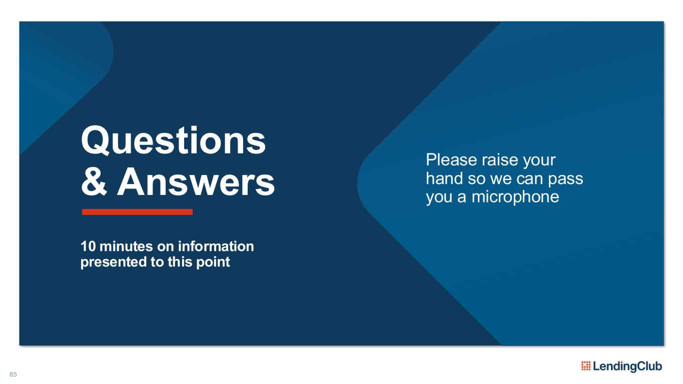 Questions & Answers 85 10 minutes on information presented to this point Please raise your hand so we can pass you a microphone