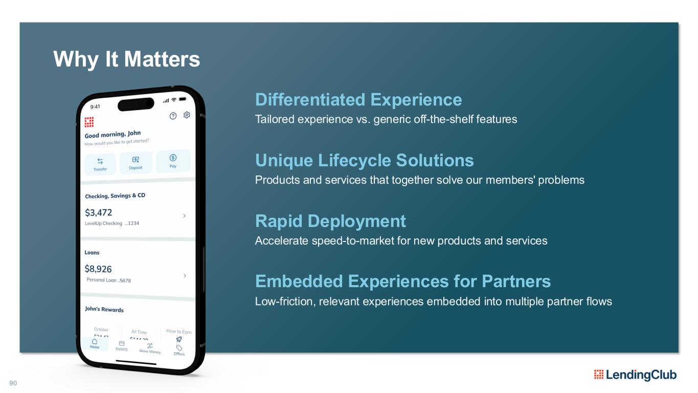90 Why It Matters Differentiated Experience Tailored experience vs. generic off-the-shelf features Rapid Deployment Accelerate speed-to-market for new products and services Unique Lifecycle Solutions Products and services that together solve our members' problems Embedded Experiences for Partners Low-friction, relevant experiences embedded into multiple partner flows
